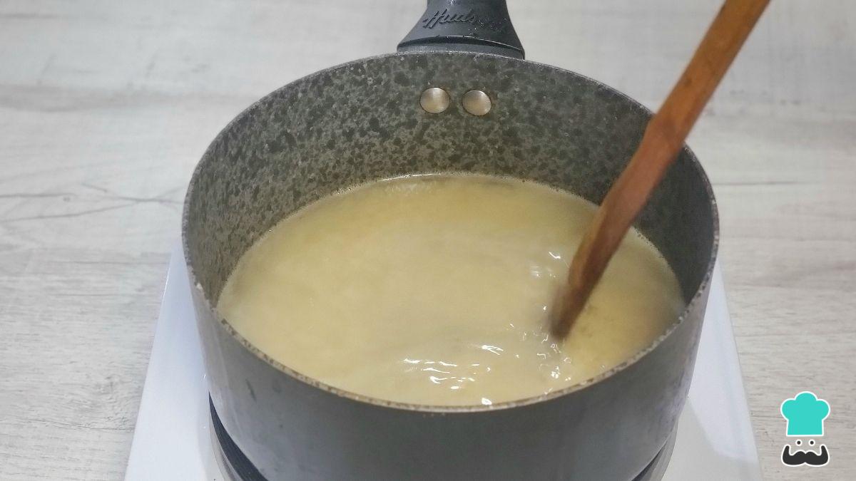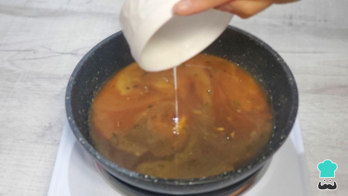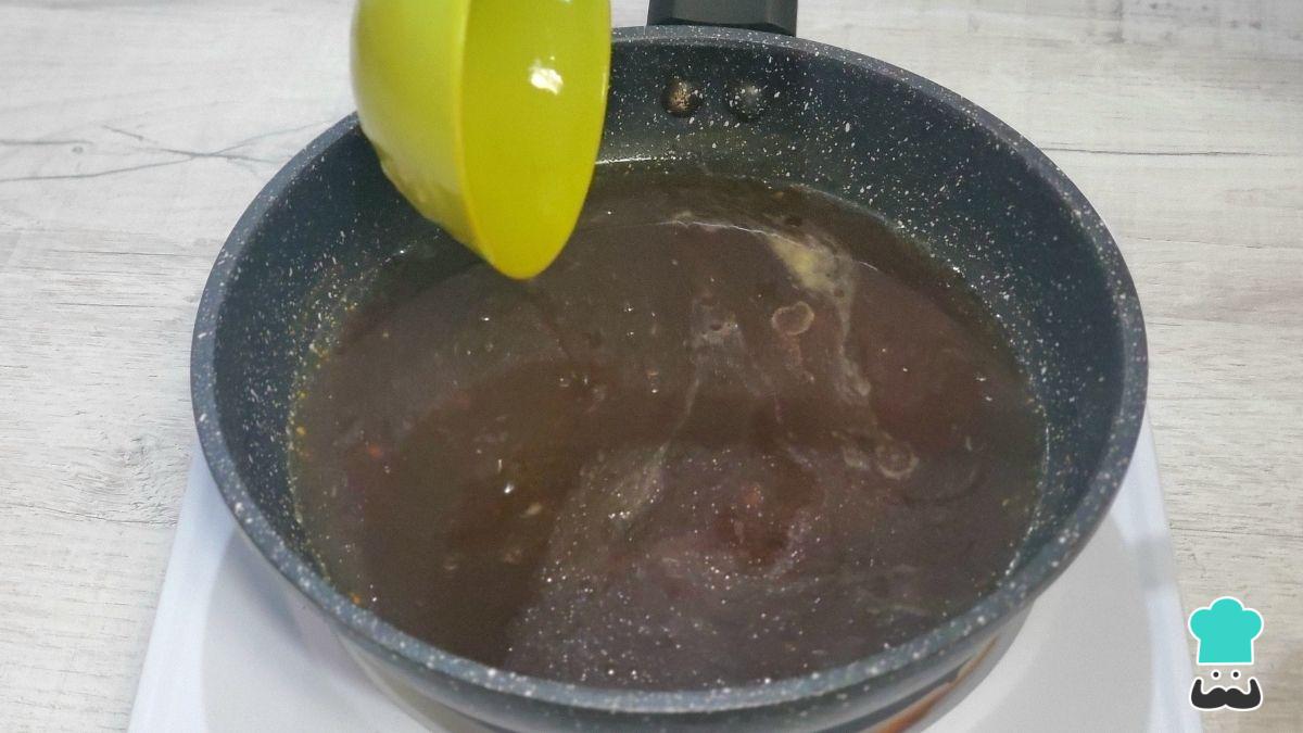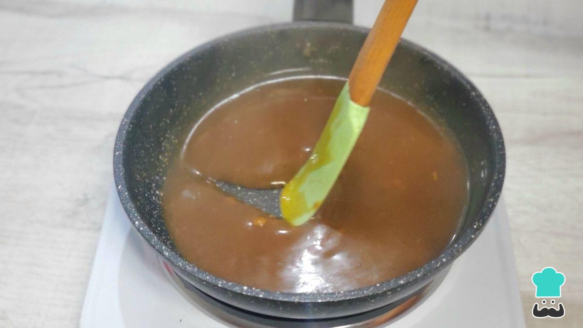 Para espesar la salsa, en un recipiente pequeño mezcla la maicena con el agua hasta que no queden grumos y vierte esta mezcla en la salsa caliente. Remueve de inmediato para evitar que se formen grumos.
