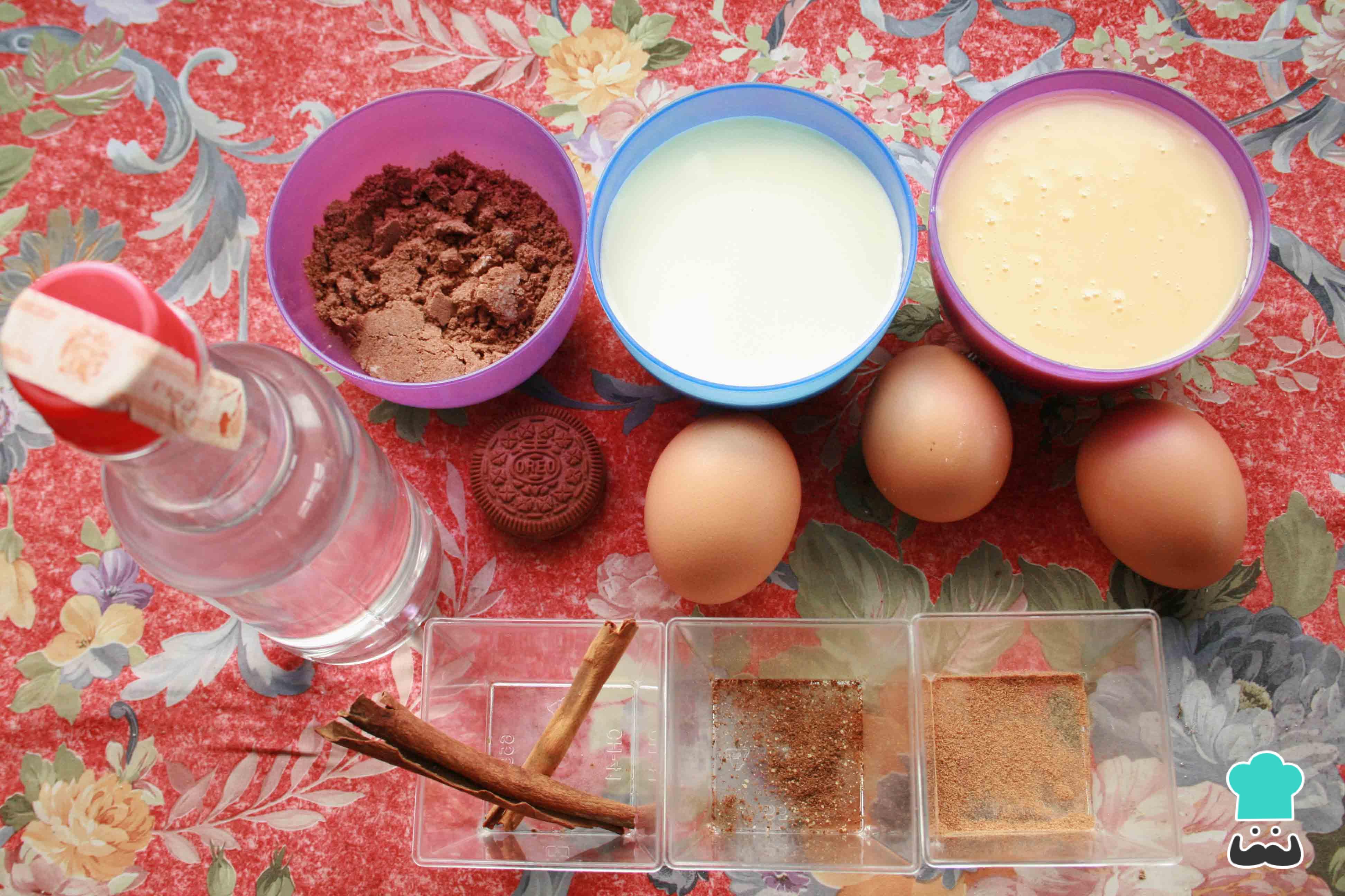 Mezcla la leche evaporada con el agua, las galletas Oreo, la canela y los clavos dulces.