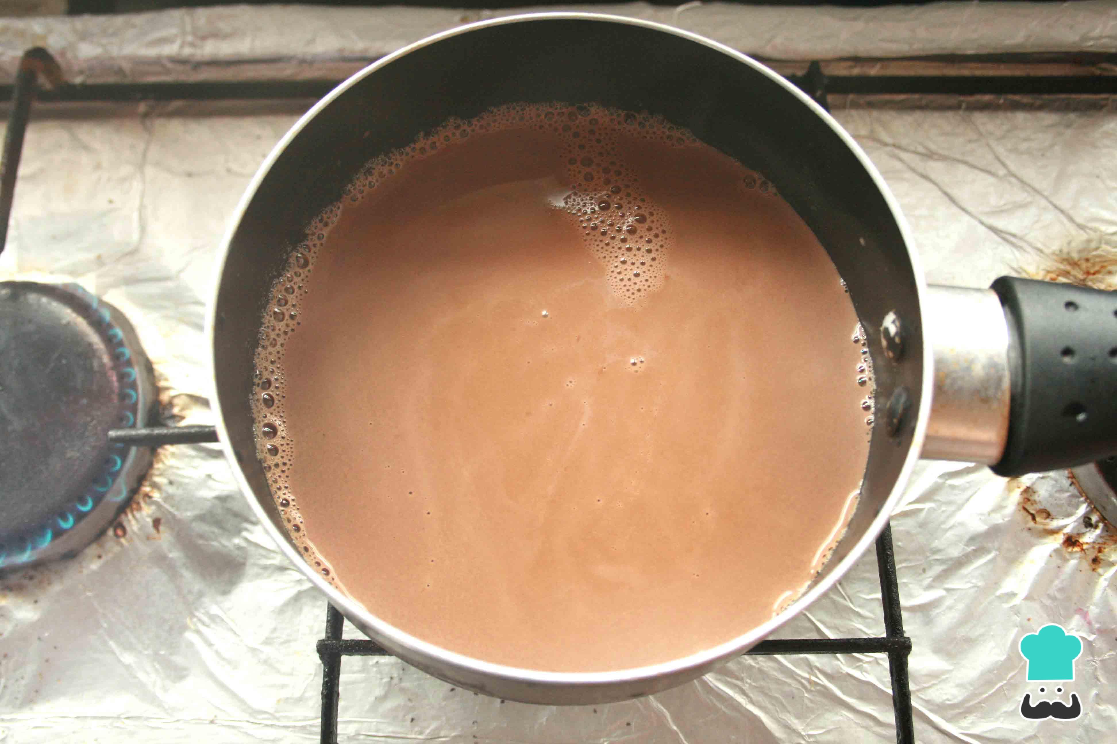 Vierte dentro de un cazo pequeño la mezcla final obtenida y cocina al baño María a fuego muy bajo por 20 minutos. Remueve constantemente para evitar que se pegue a los bordes. Cuando el ponche consiga la textura que deseas, podrás retirarlo del fuego. Recuerda, tú decides cómo de espeso lo deseas, es cuestión de gustos.