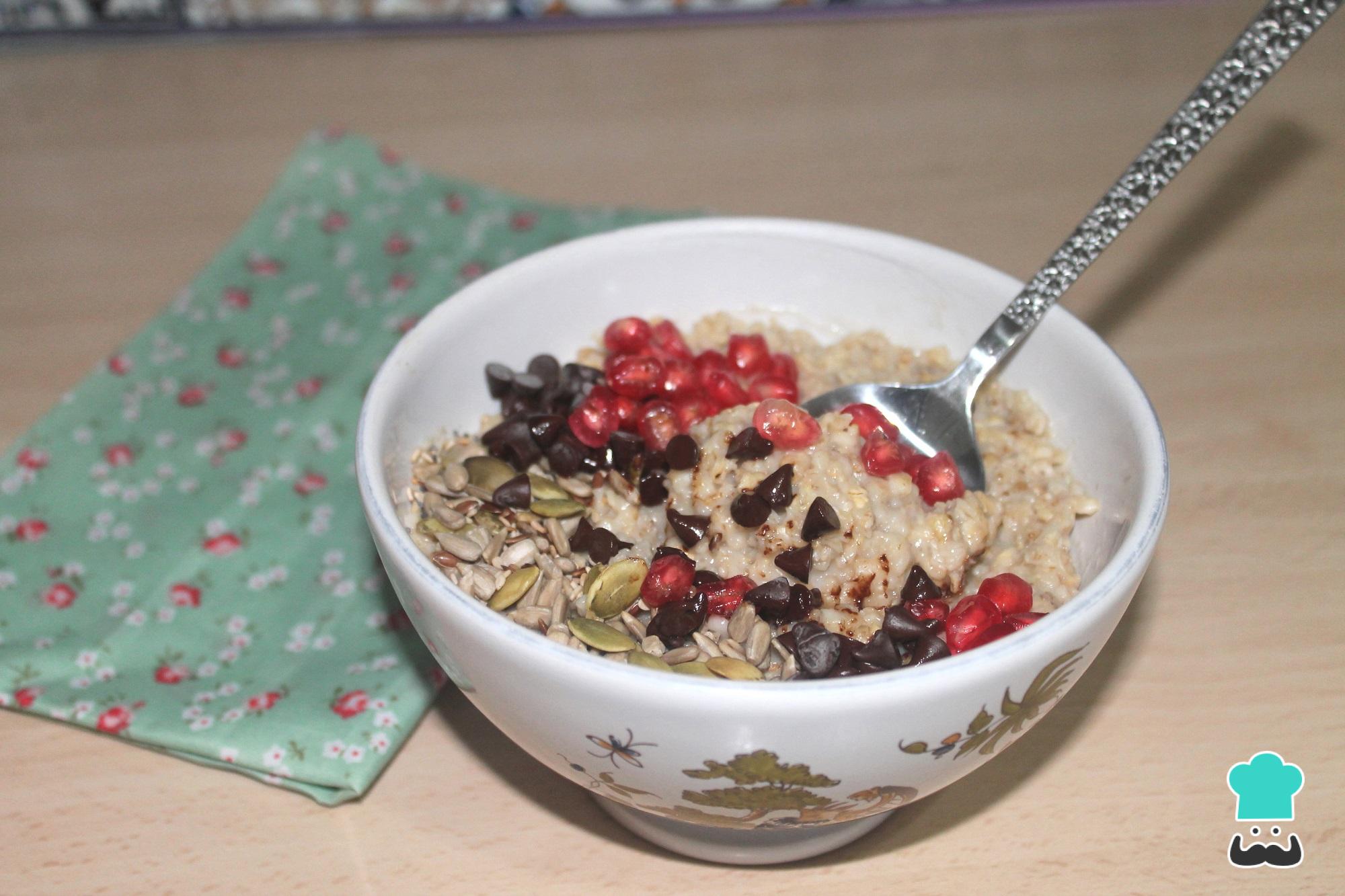 La receta de porridge de avena puede acompañarse de muchos ingredientes. En este caso, hemos agregado fruta fresca, chocolate y semillas. De esta forma, lo convertimos en un desayuno súper completo, fitness y perfecto para quienes se ejercitan todos los días. En RecetasGratis tenemos todo listo, solo falta que comiences preparando los ingredientes y leas el paso a paso para que descubras cómo hacer porridge de avena.