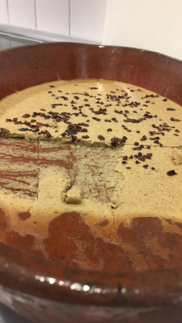 Con la masa para el pudin ya lista, el siguiente paso es verter la mezcla en un molde de silicona o de metal, previamente engrasado para evitar que se pegue.
