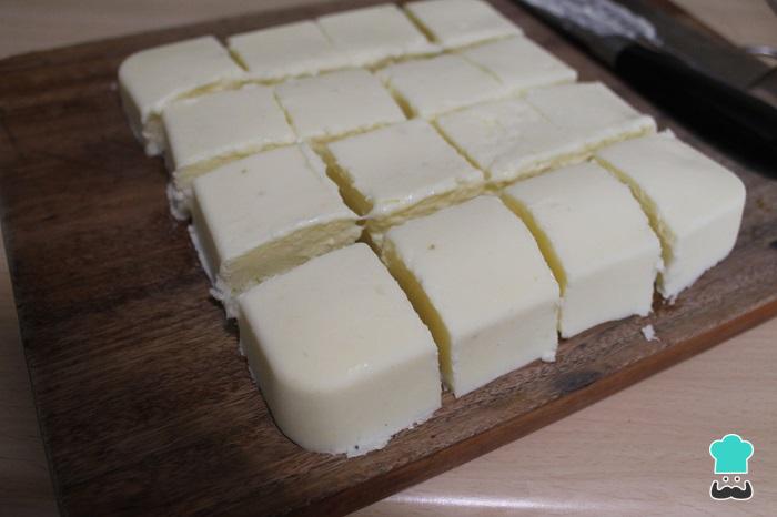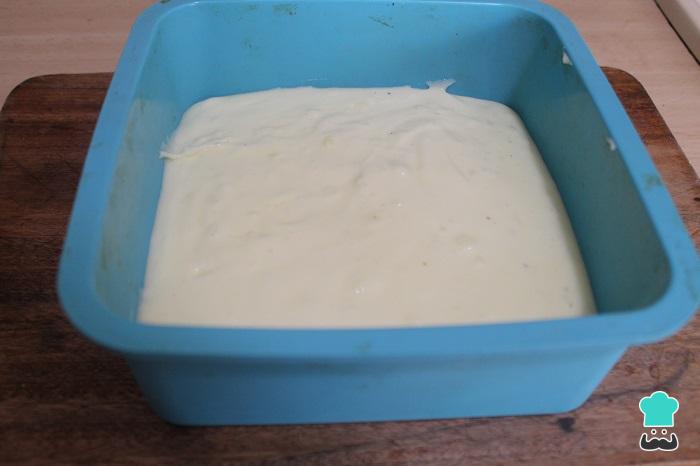 Vertemos en un molde cuadrado, de aproximadamente 17x17 cm y preferiblemente de silicona para que se desmolde mejor, el puré de patata y lo llevamos al congelador entre 4 y 6 horas.