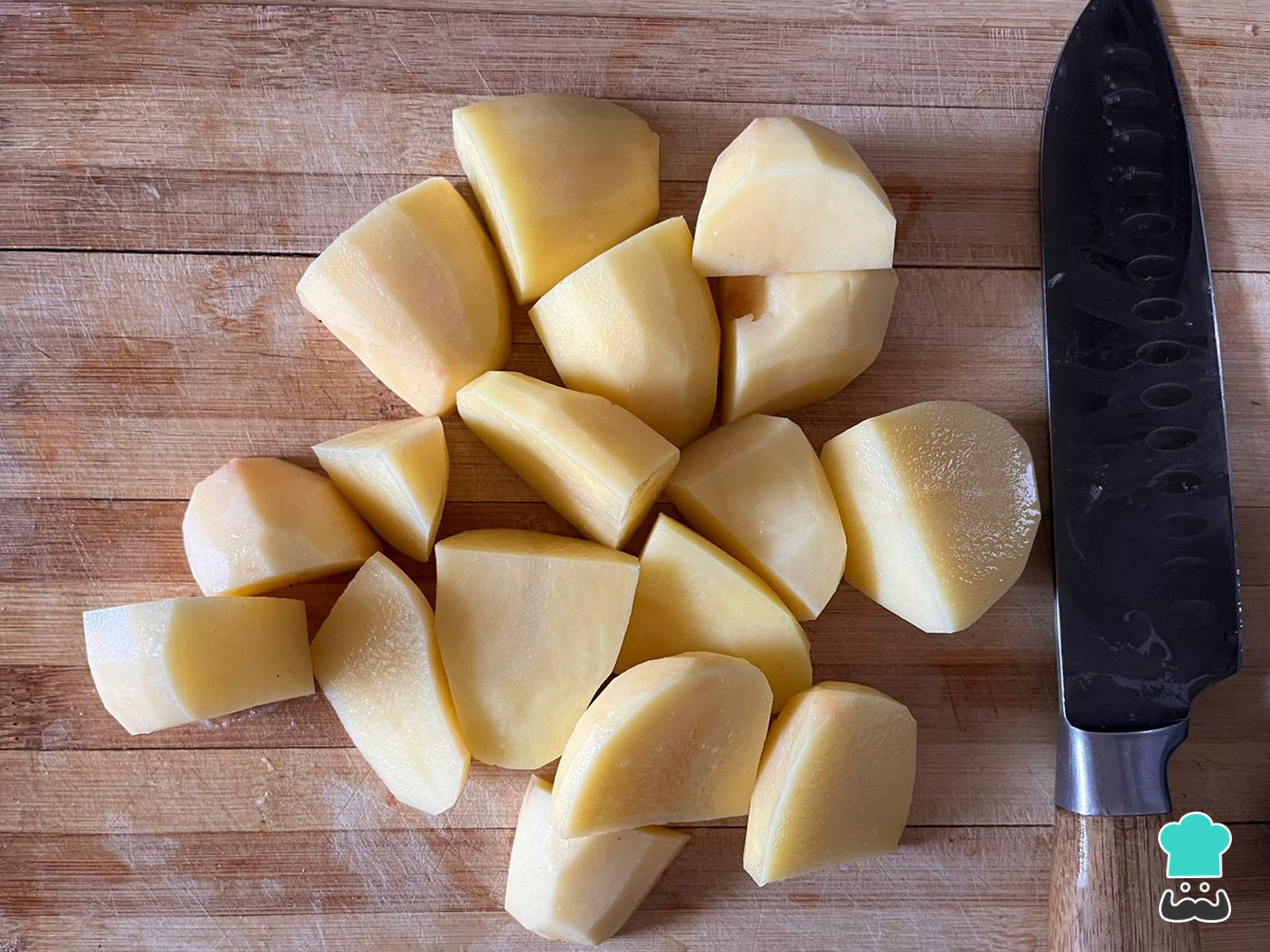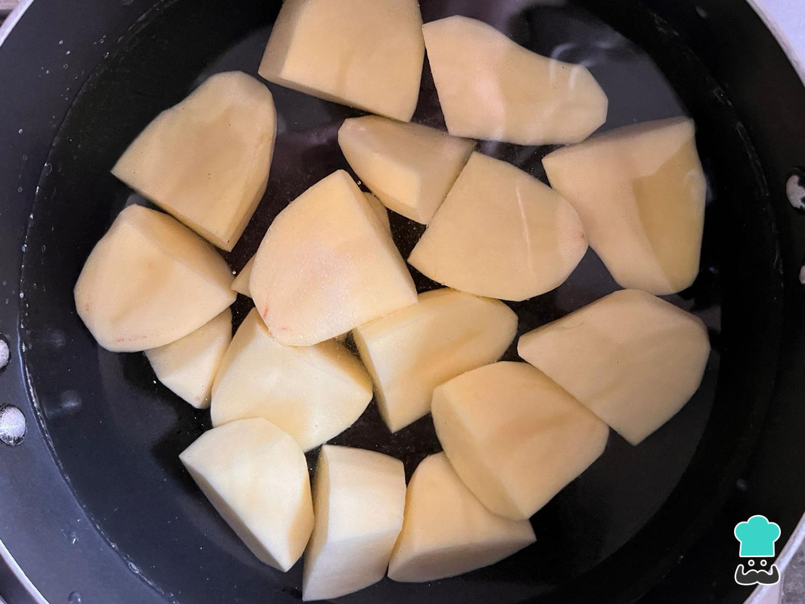Hierve las papas en una olla con agua y sal hasta que estén blandas, aproximadamente 15-20 minutos.