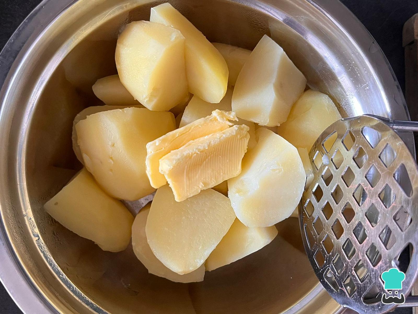 Escurre las papas y añade en un bol, agrega la mantequilla.