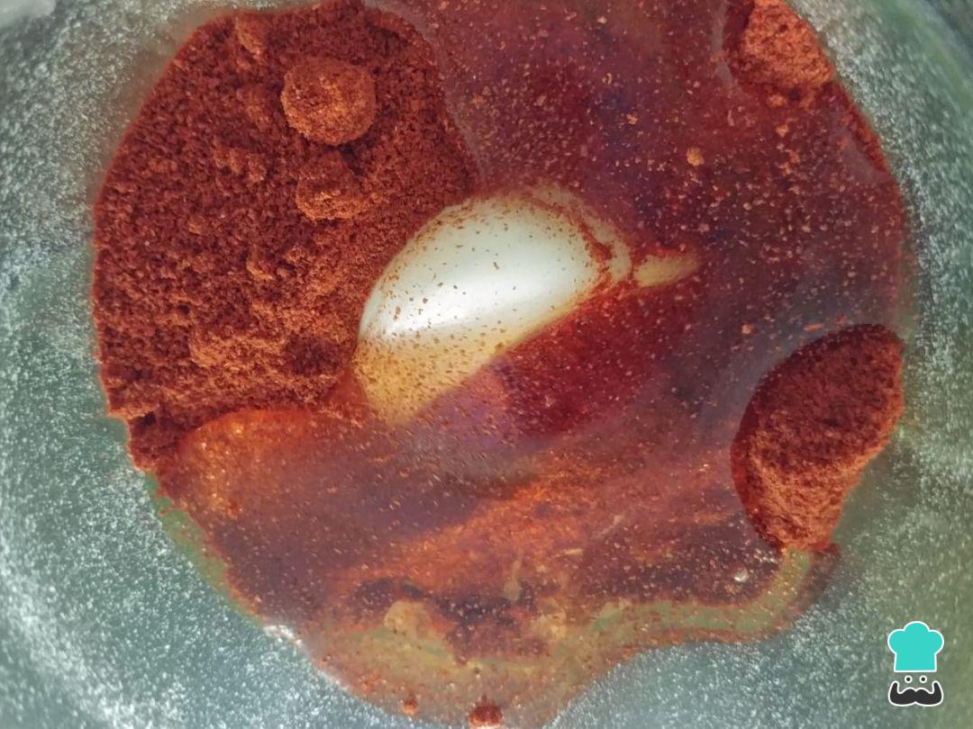 Coloca en el vaso de la batidora los cacahuetes, la levadura de cerveza, el pimentón, la cúrcuma, la sal, la pimienta, el ajo, el sirope de arce, el zumo de limón y una taza de agua. Bate los ingredientes hasta que se forme una mezcla homogénea.
