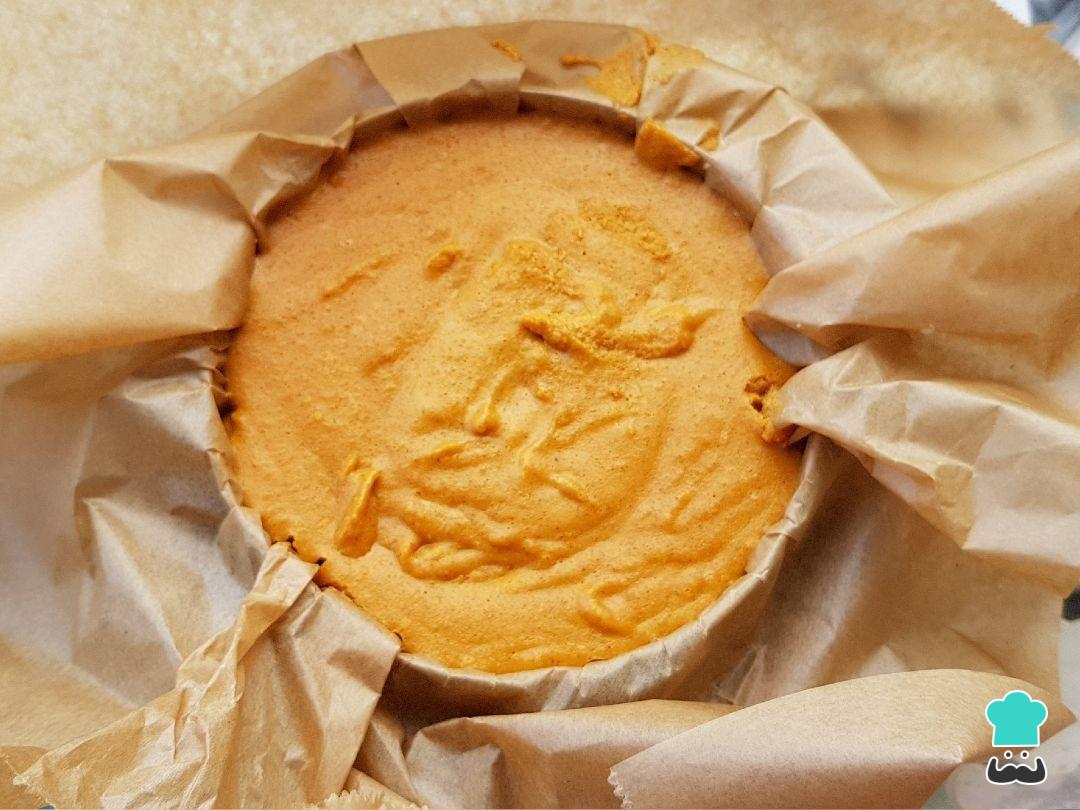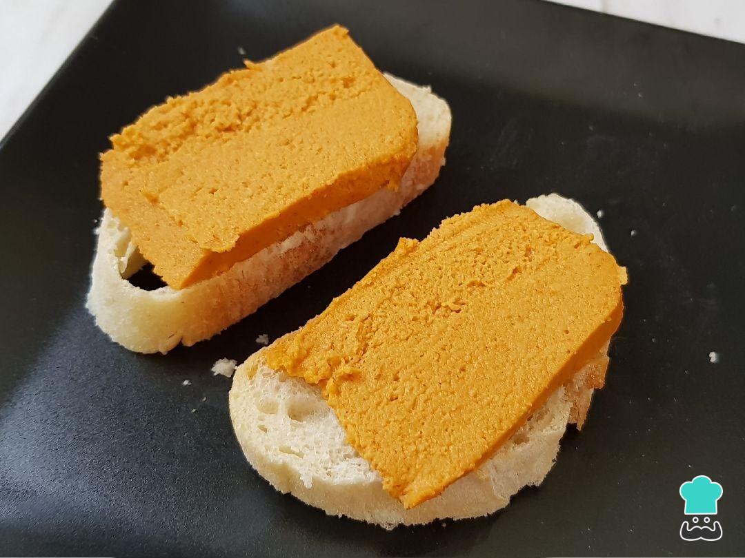 Prepara un molde redondo recubierto con papel de horno y vierte la mezcla dentro. Guarda el queso ahumado vegano en la nevera durante al menos una hora para que endurezca.