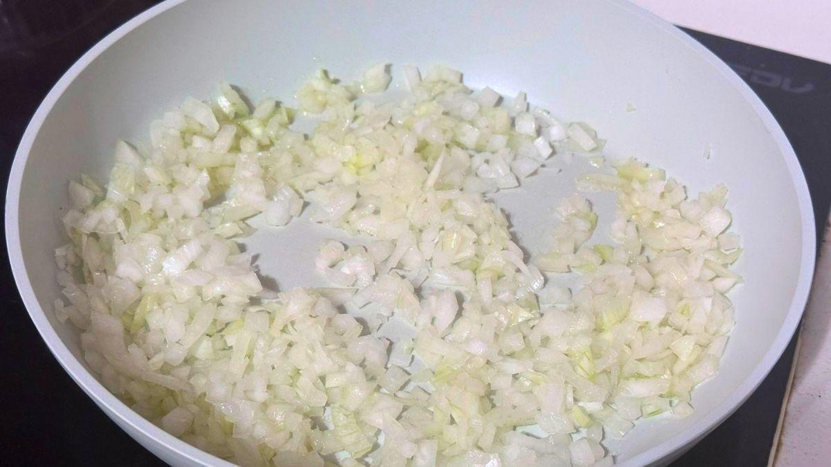 En un sartén añade un poco de aceite de oliva y agrega la cebolla, sofríe a fuego medio hasta que la cebolla se ponga transparente.