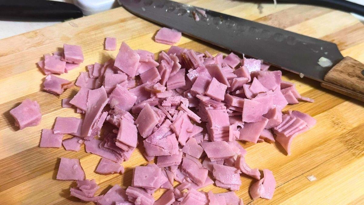 Corta el jamón york o tocino en tiras o cubos pequeños.