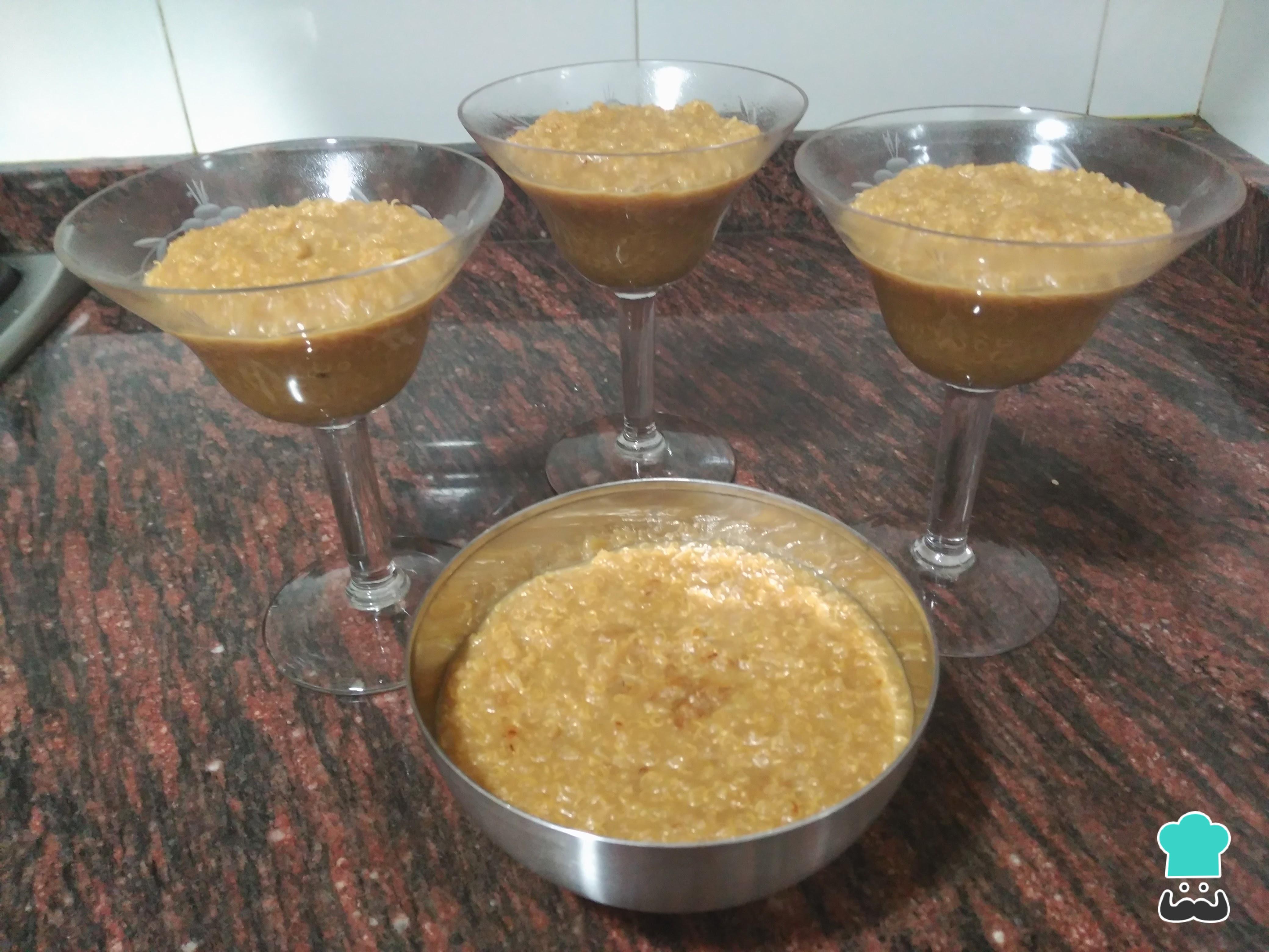 Una vez pasados los 45 minutos, la quinoa con leche tendrá esta apariencia de color caramelo debido al color del azúcar de coco, pero si prefieres que sea de color blanco, añade otro tipo de endulzarte como el azúcar blanco o el azúcar glass.