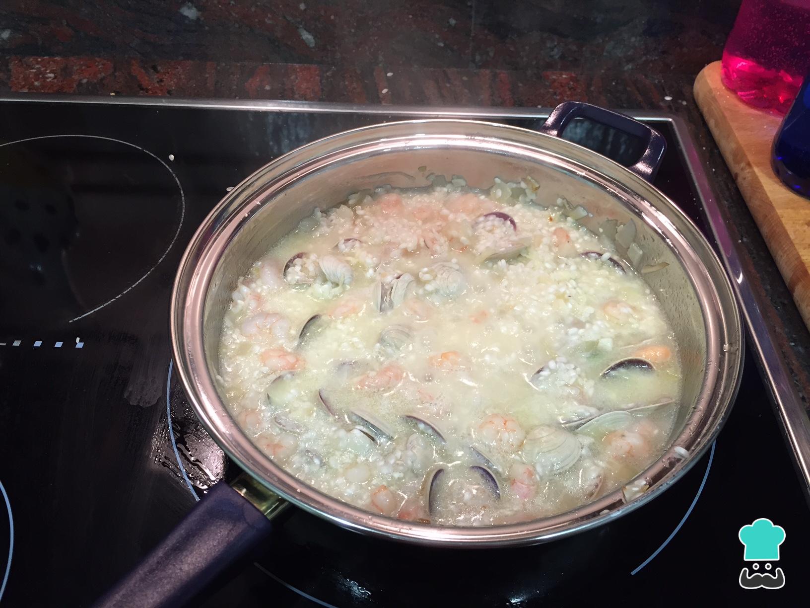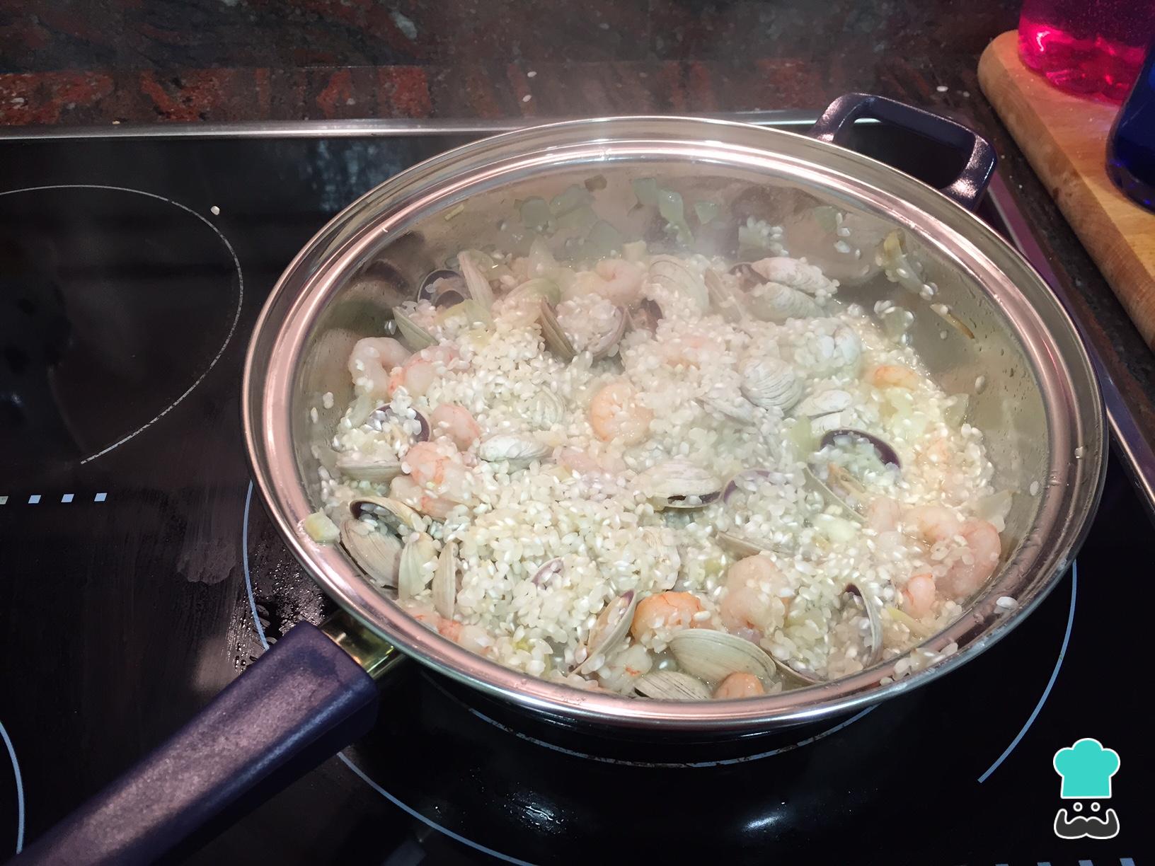 Un fantástico plato procedente de la cocina italiana, una de las más valoradas del mundo. En esta ocasión presentamos un risotto fácil y económico, para cuando vas mal de tiempo, y delicioso por su textura melosa característica de este plato. Sigue leyendo y descubre los pasos que en RecetasGratis.net te enseñamos para preparar este espectacular risotto de gambas y almejas.