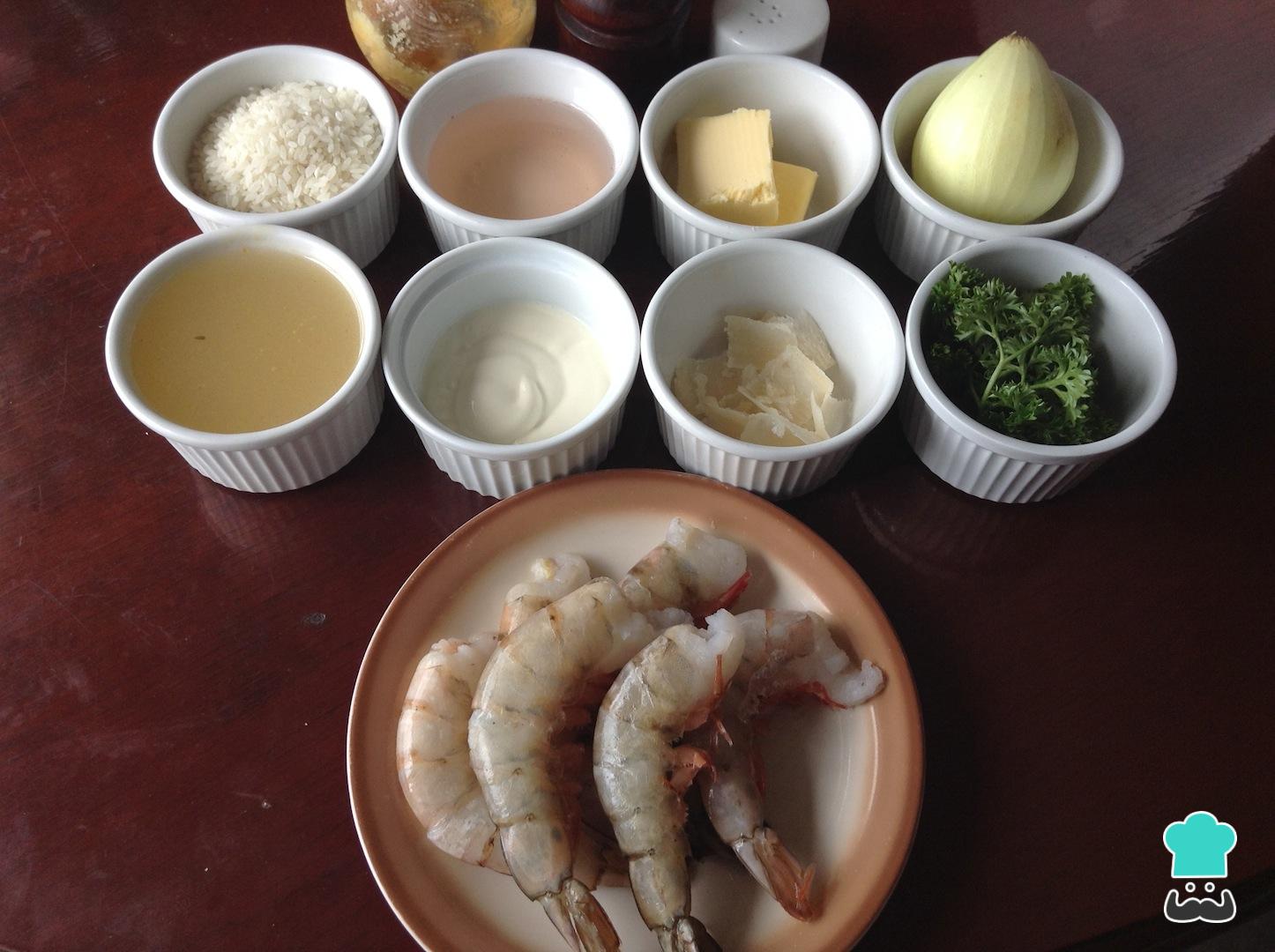El primer paso para realizar nuestra receta es prealistar los ingredientes del risotto de langostinos.