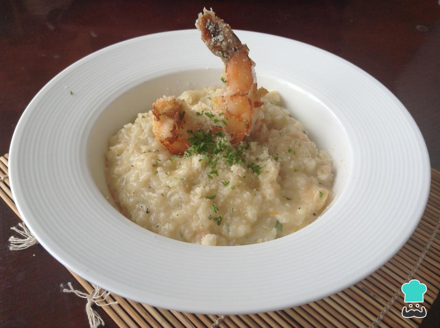 En esta receta vamos hacer un risotto tradicional,receta típica italiana que consiste en un arroz muy cremoso. En esta caso vamos a incluir langostinos, un marisco que aportará un sabor elegante y muy gourmet a nuestro risotto. Entonces vamos a ver los ingredientes y el paso a paso para el risotto de langostinos.