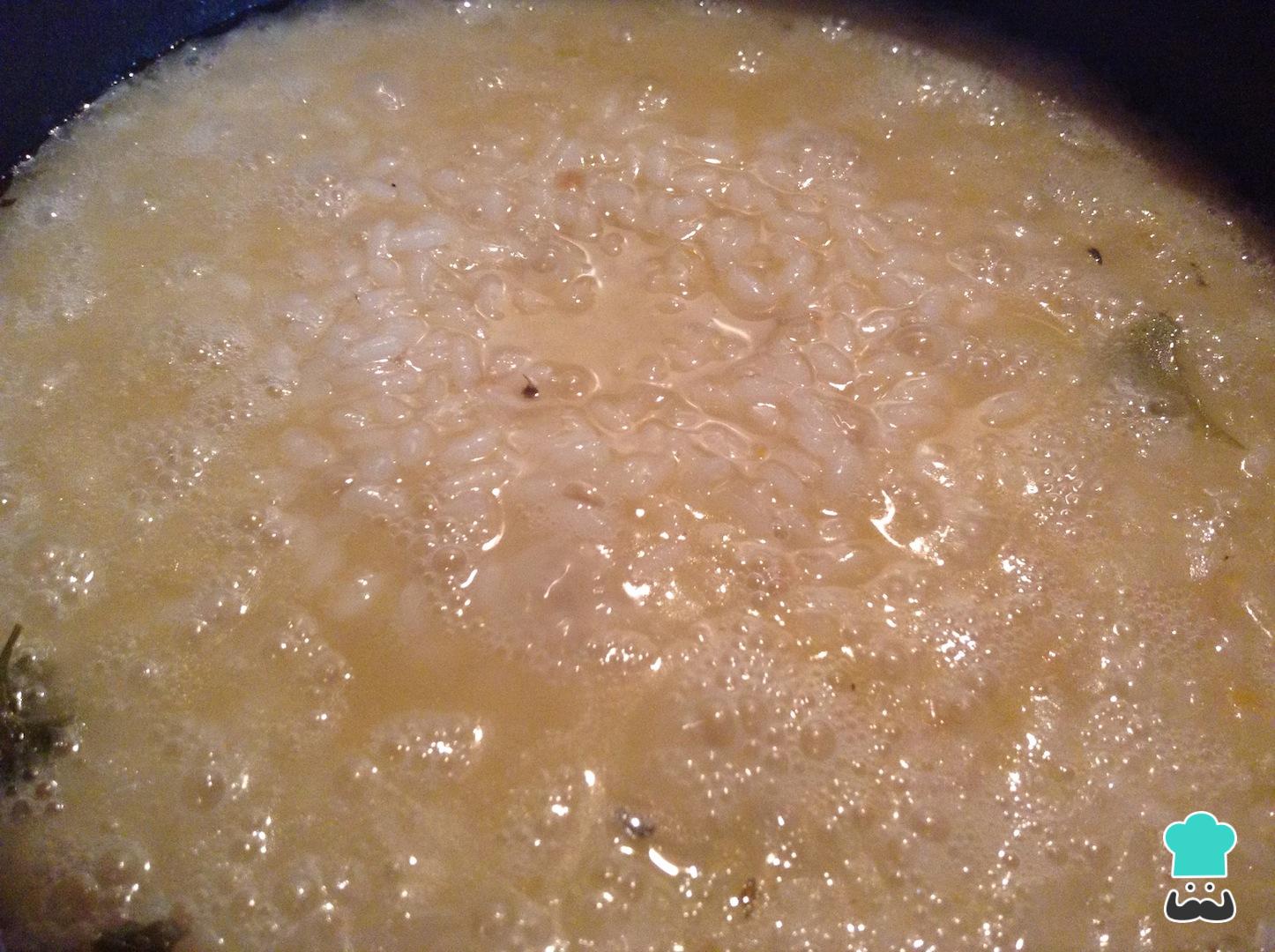 Verás como el arroz va absorbiendo el caldo. La idea es conseguir una consistencia cremosa como se observa en la fotografía.
