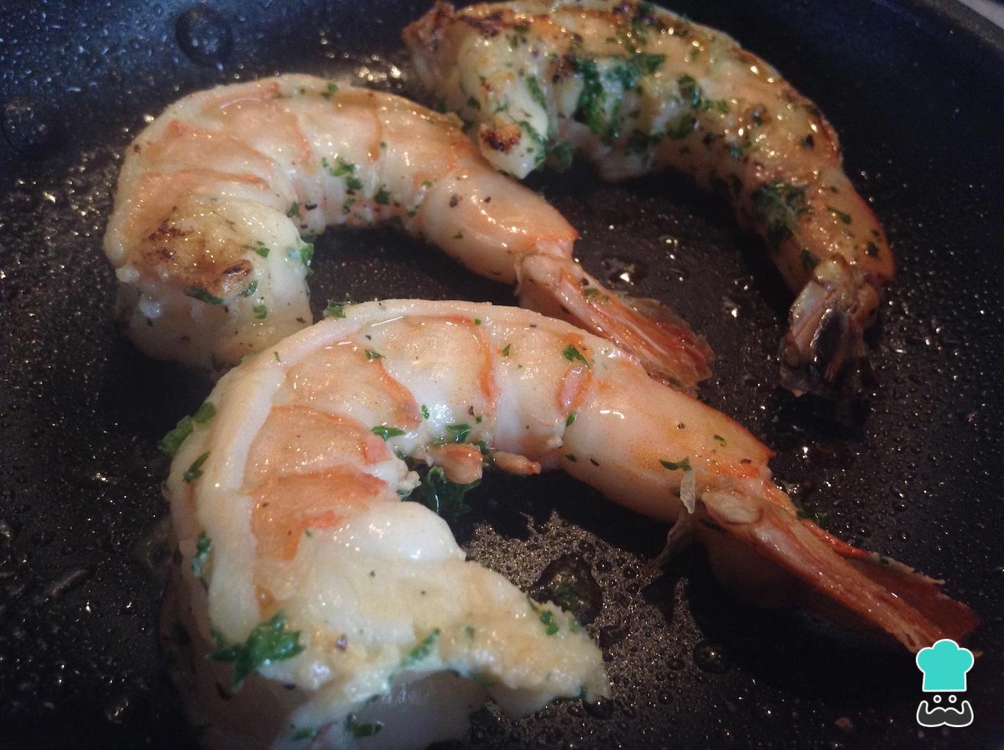Aparte, saltea los langostinos en un sartén bien caliente. Agrega perejil fresco, sal, pimienta negra y ajo finamente picado. Recuerda no sobre cocinarlos, unos 5 minutos de cada lado será suficiente.