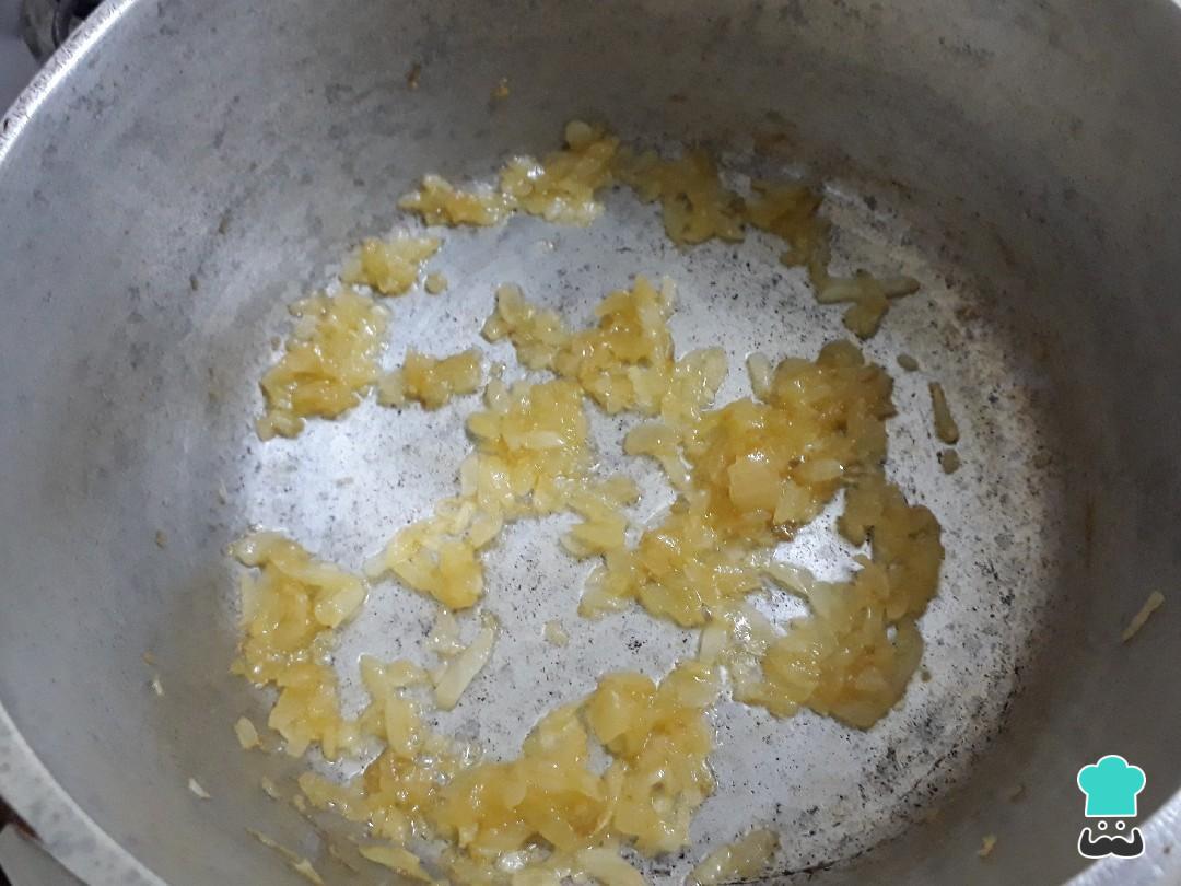 Fríe la cebolla en una cacerola con 2 cucharadas de mantequilla y el aceite de oliva hasta que esté bien dorada.
