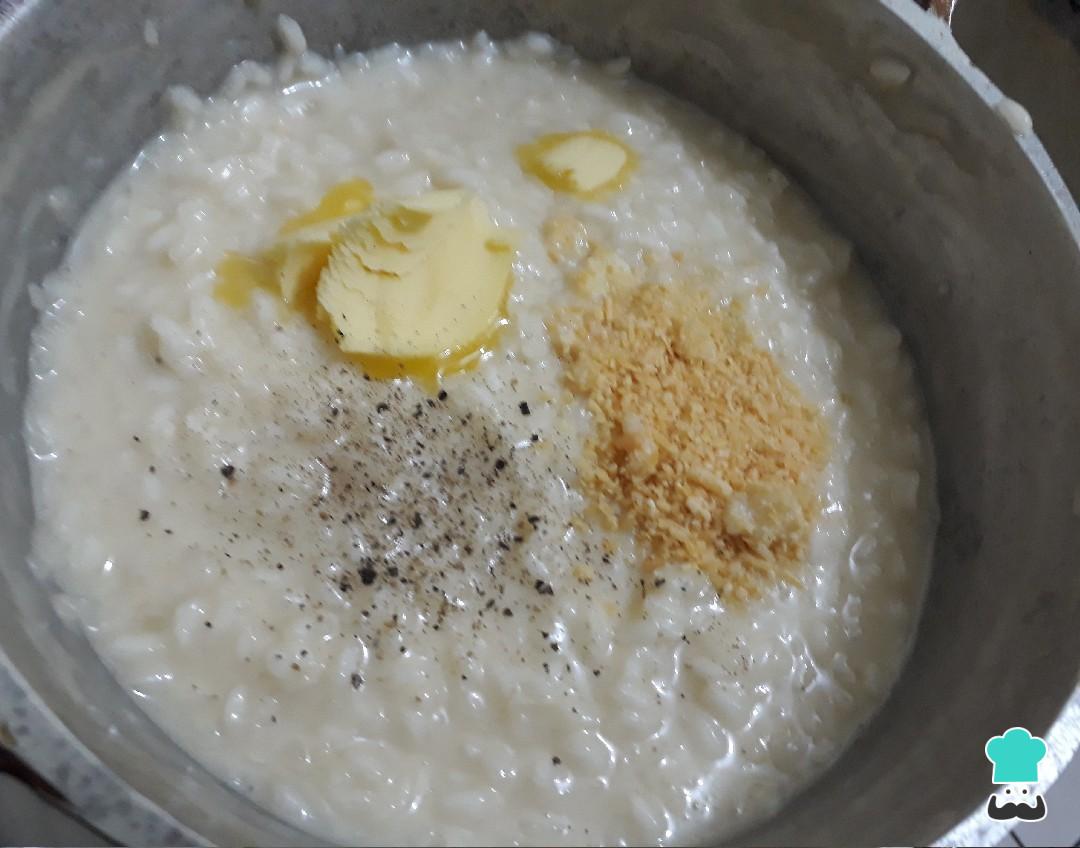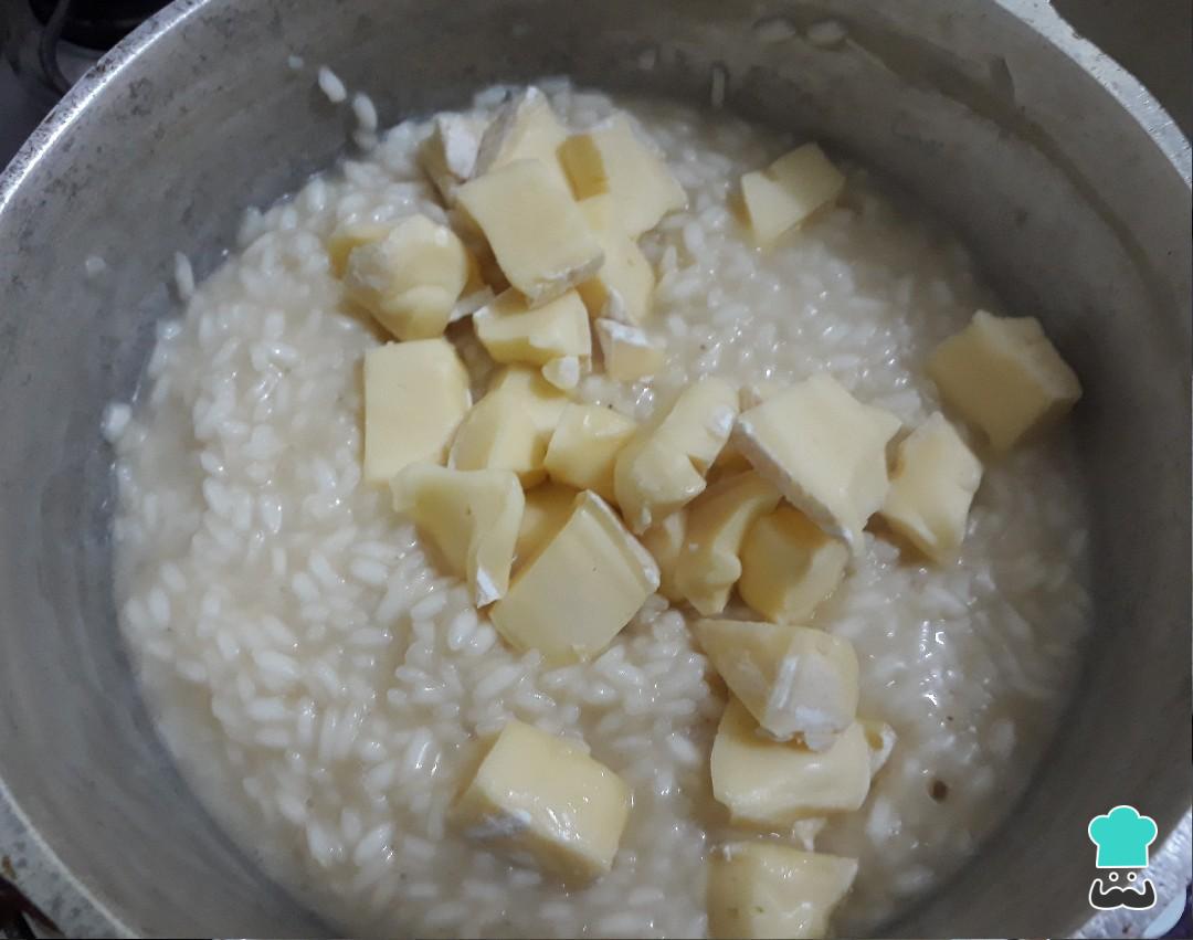 Ves repitiendo el proceso de agregar caldo al risotto de queso fácil hasta que el arroz tenga la cocción adecuada (lo ideal es que esté al dente, ni demasiado crudo ni demasiado cocido). Una vez que haya llegado, añade el queso Brie en trocitos y mezcla para se derrita bien.