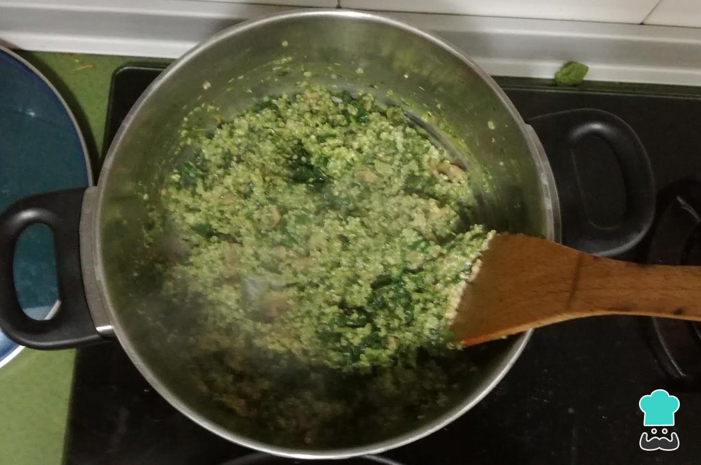 Cómo hacer Risotto de quinoa vegano con setas y espinacas: