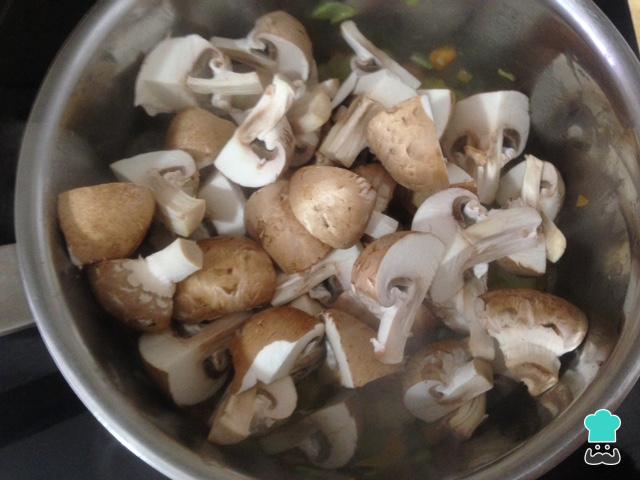 Agregamos las setas cortadas en cuartos y cocinamos durante 3 minutos.