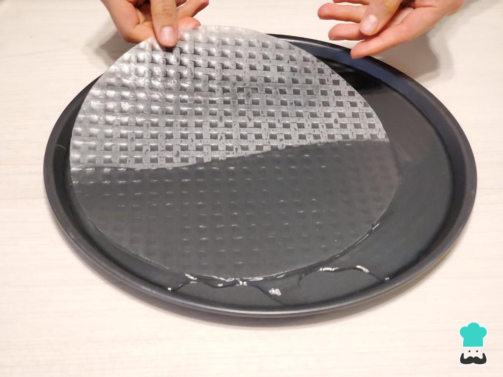 - Coloca velozmente la hoja sobre una tabla de picar, si deseas puedes engrasarla ligeramente para que puedas manipularla con mayor tranquilidad.
