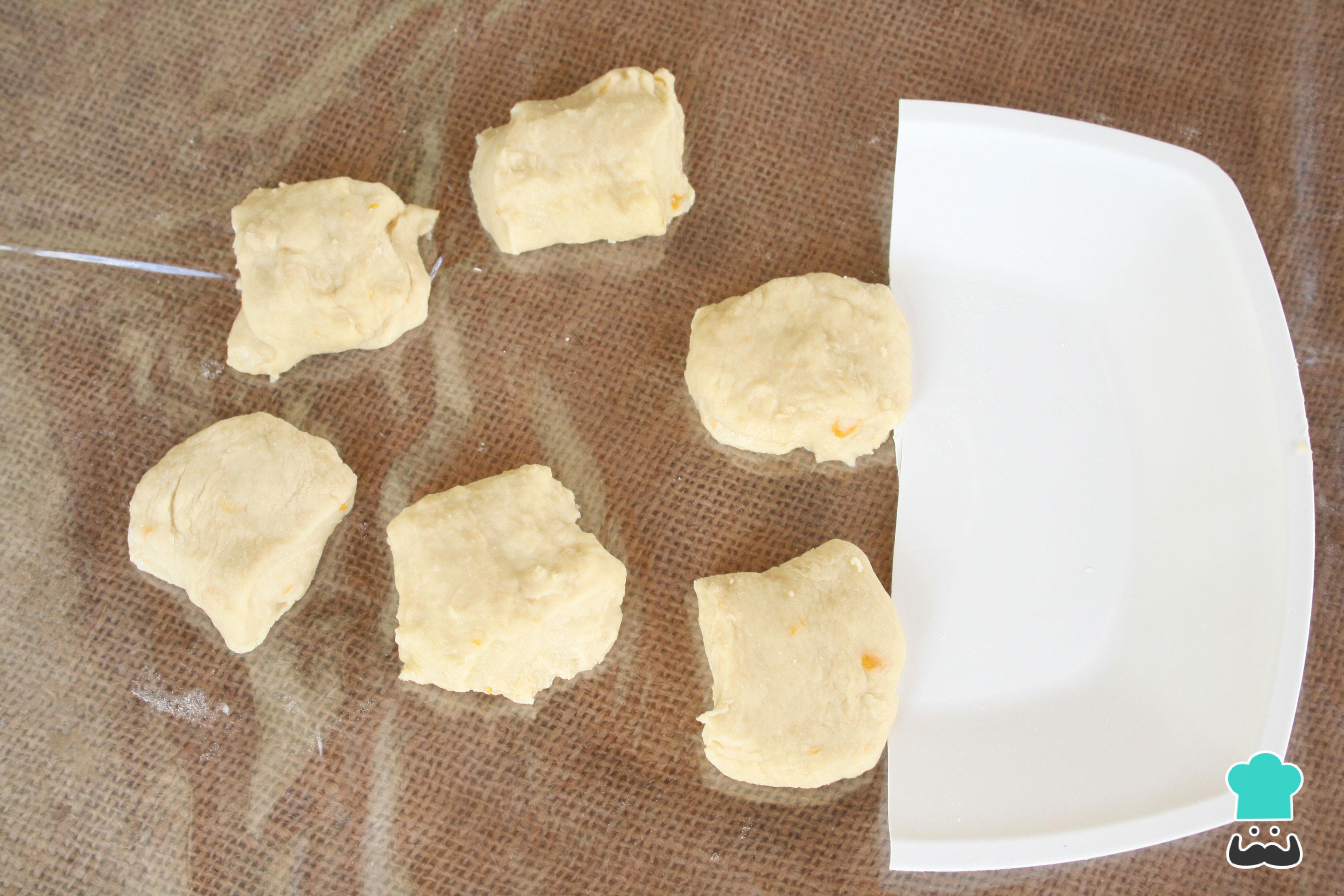 Corta la bola en pequeños trozos de masa. La cantidad varia según el tamaño que le proporciones a los trozos.