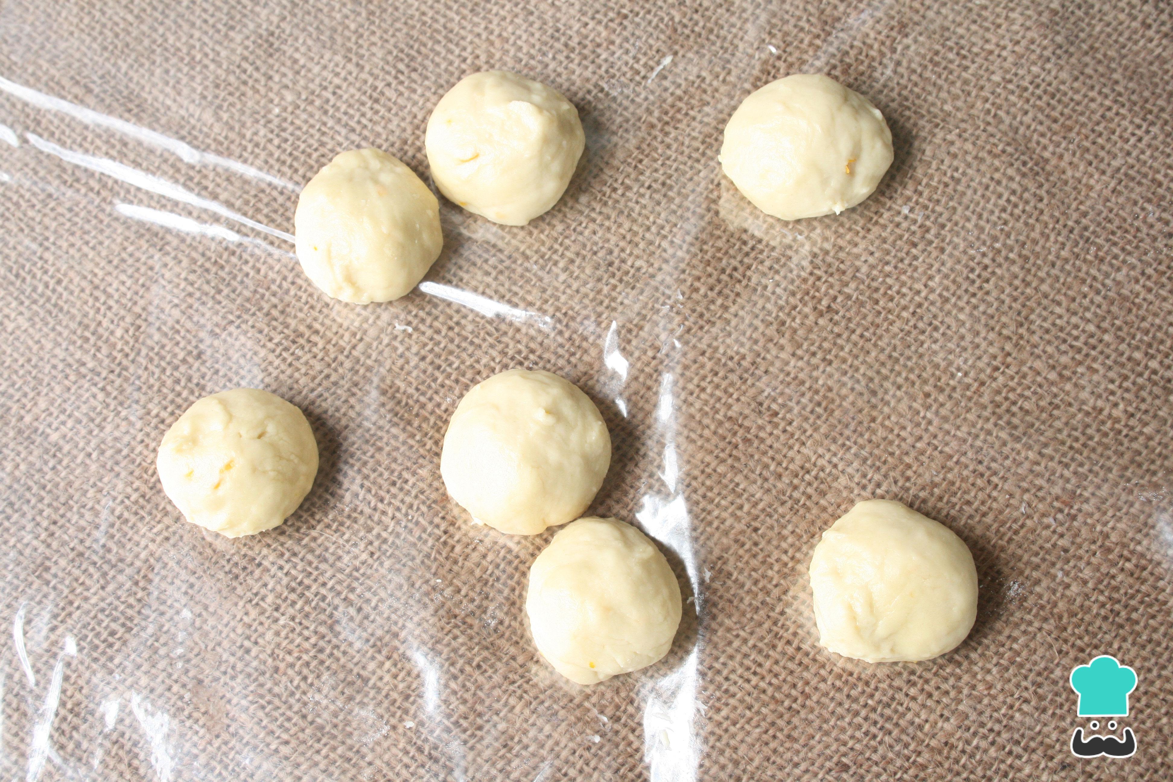 Crea pequeñas bolas con los trozos de masa de rosquillas de anís.