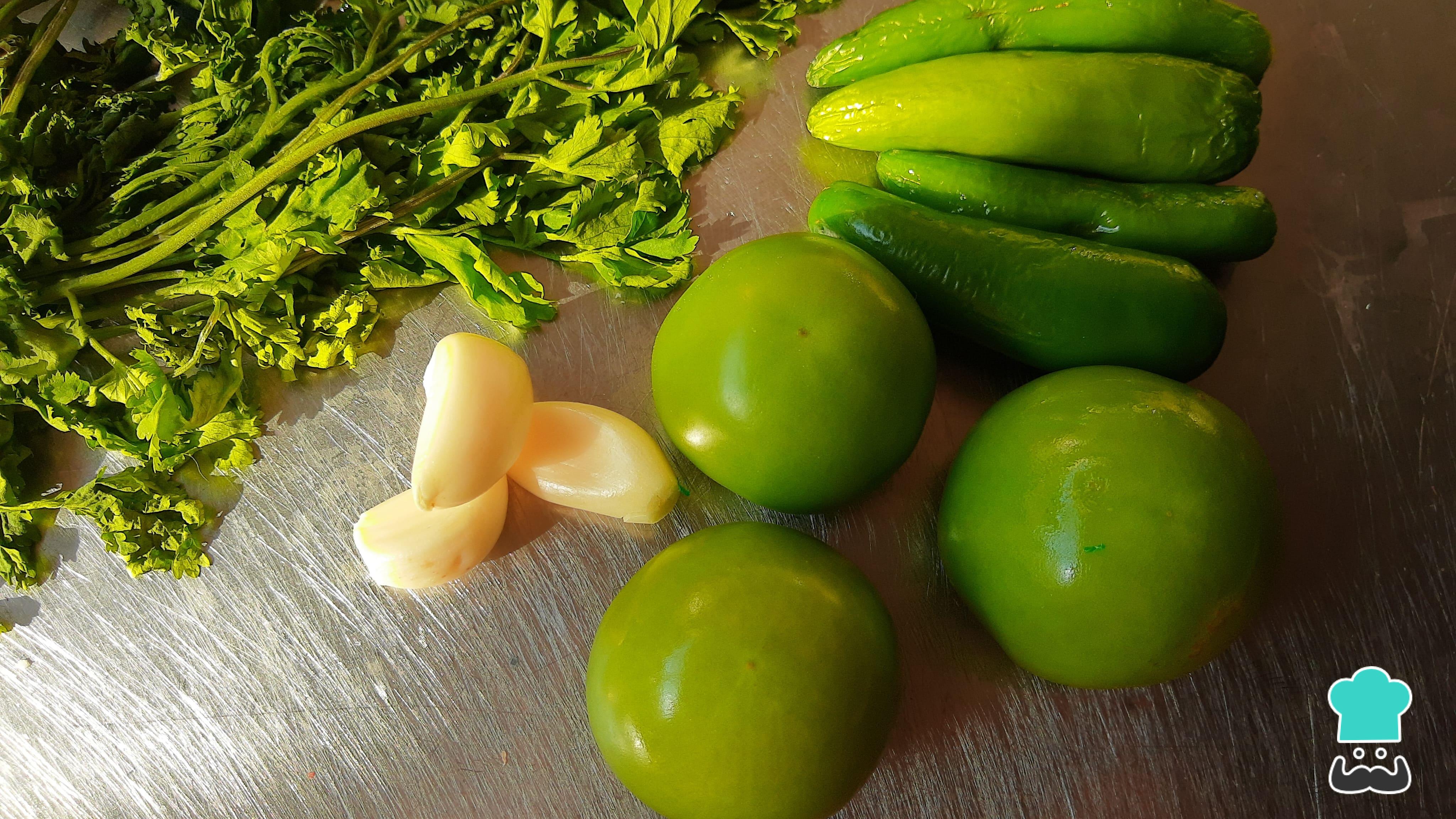 Para hacer esta receta de salsa de aguacate para tacos, primero limpia y lava muy bien todos los ingredientes. Especialmente es muy importante limpiar los tomates verdes, pues suelen venir con grasa y tierra. Por su parte, a los chiles serrano retírales el tallo, lava y desinfecta el cilantro y pela los dientes de ajo.