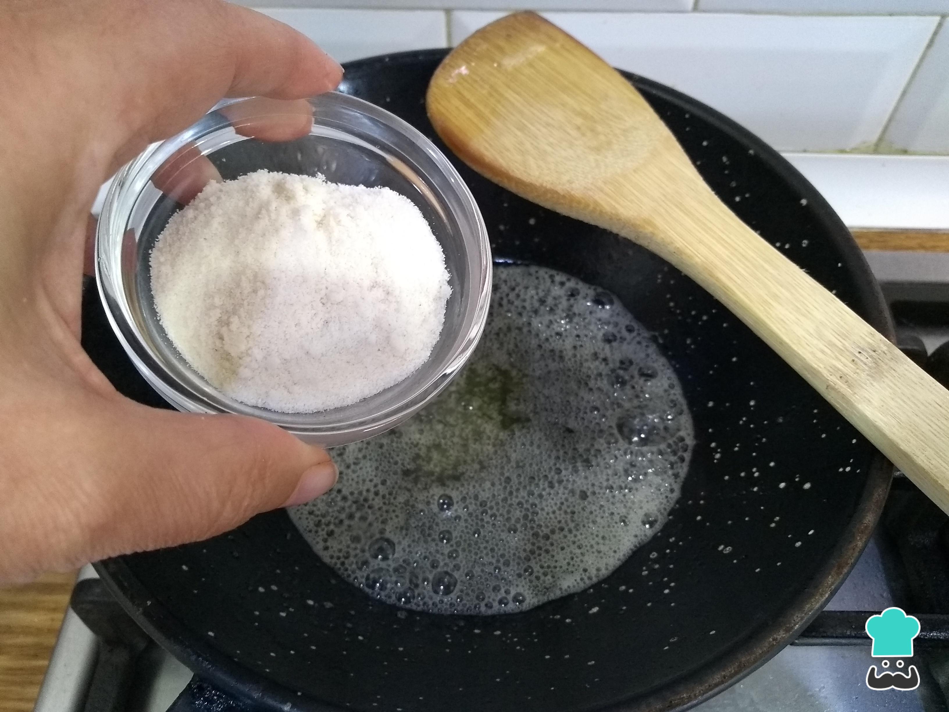 Cuando la mantequilla apenas se haya derretido, añade la harina de maíz. Dora un poco la harina a fuego bajo para que pierda el sabor a cruda.