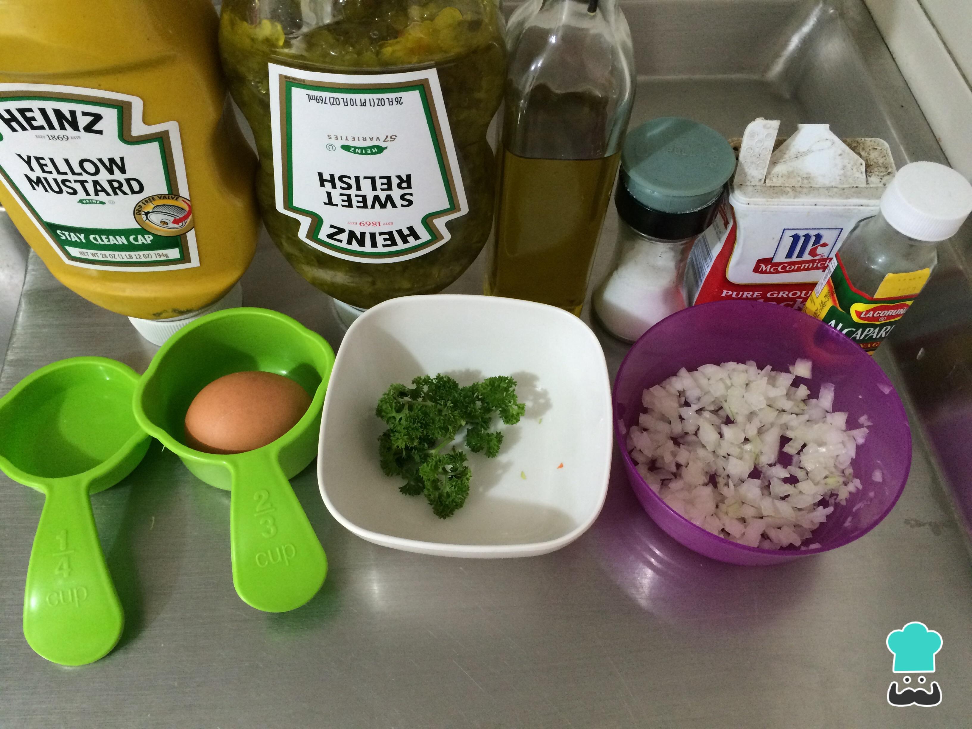 Antes de realizar esta salsa francesa, el primer paso es alistar todos los ingredientes. Recuerda que puedes usar la marca de alimentos que prefieras para tus preparaciones.