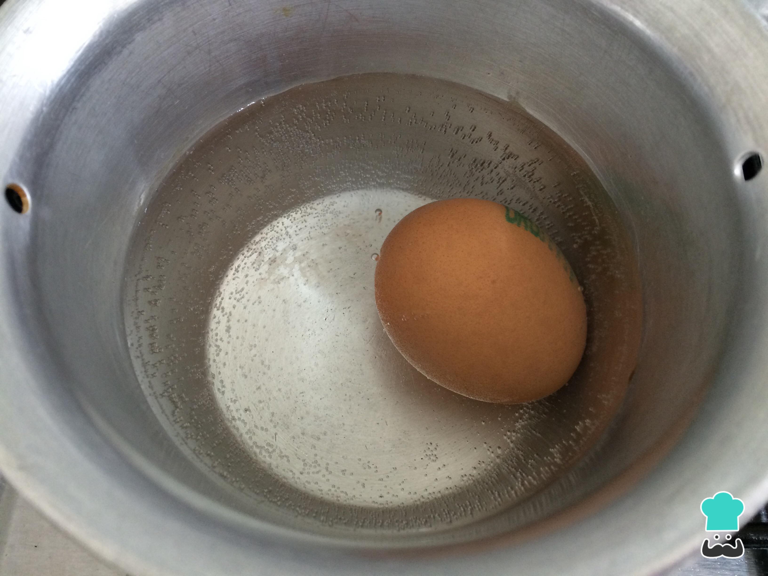 En una olla con agua y un poco de vinagre, cocinar el huevo entero durante 5 minutos. Una vez esté listo, pelar y separar la clara de la yema.