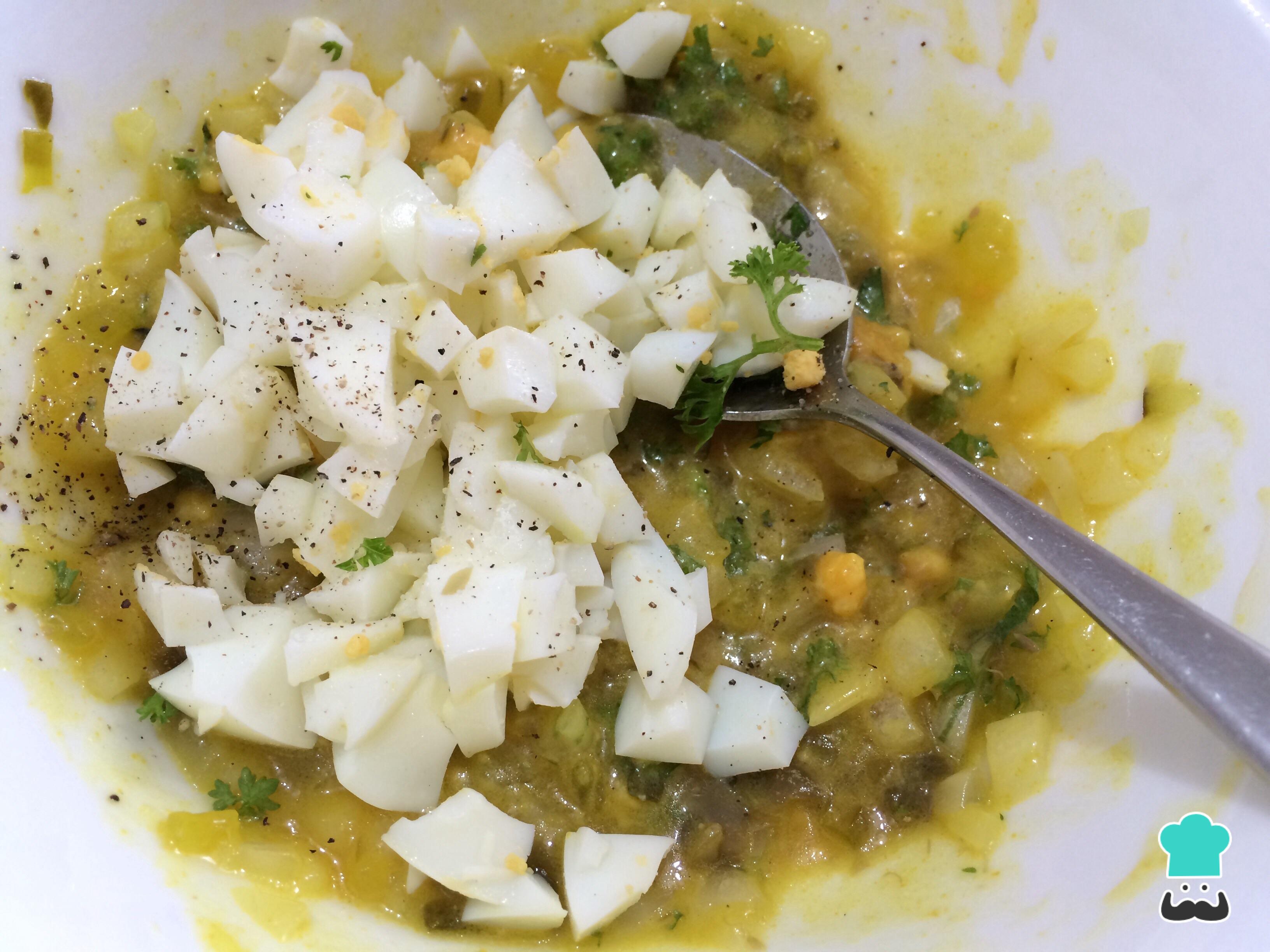 Finalmente añadir la clara de huevo cocida cortada en cubos pequeños y salpimentar la preparación.