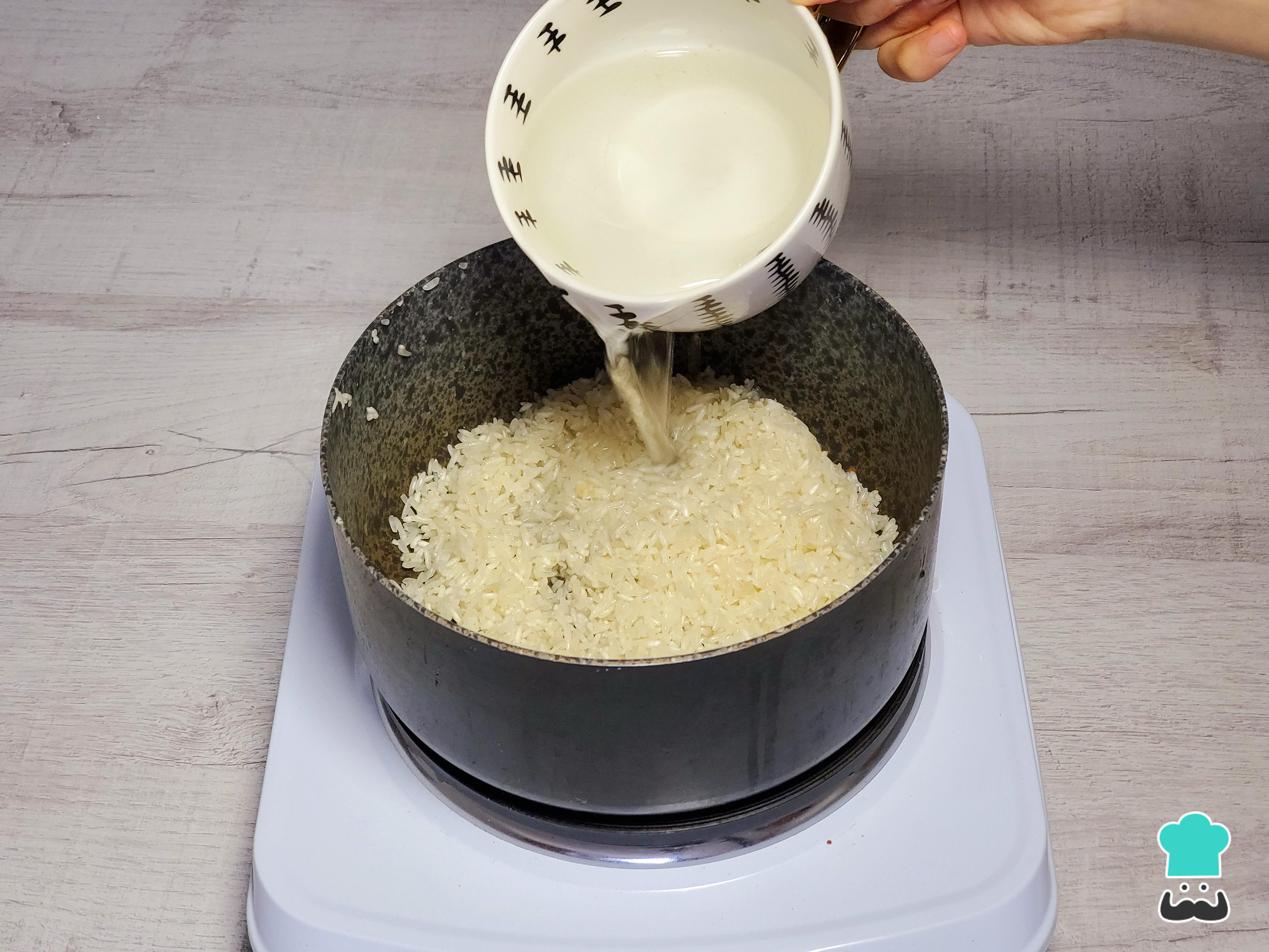 Para el arroz, comienza lavándolo muy bien. Luego, en una olla con un chorro de aceite y un poco de ajo molido o finamente picado, nacáralo hasta que los granos se vean traslúcidos, cuidando que el ajo no se queme.