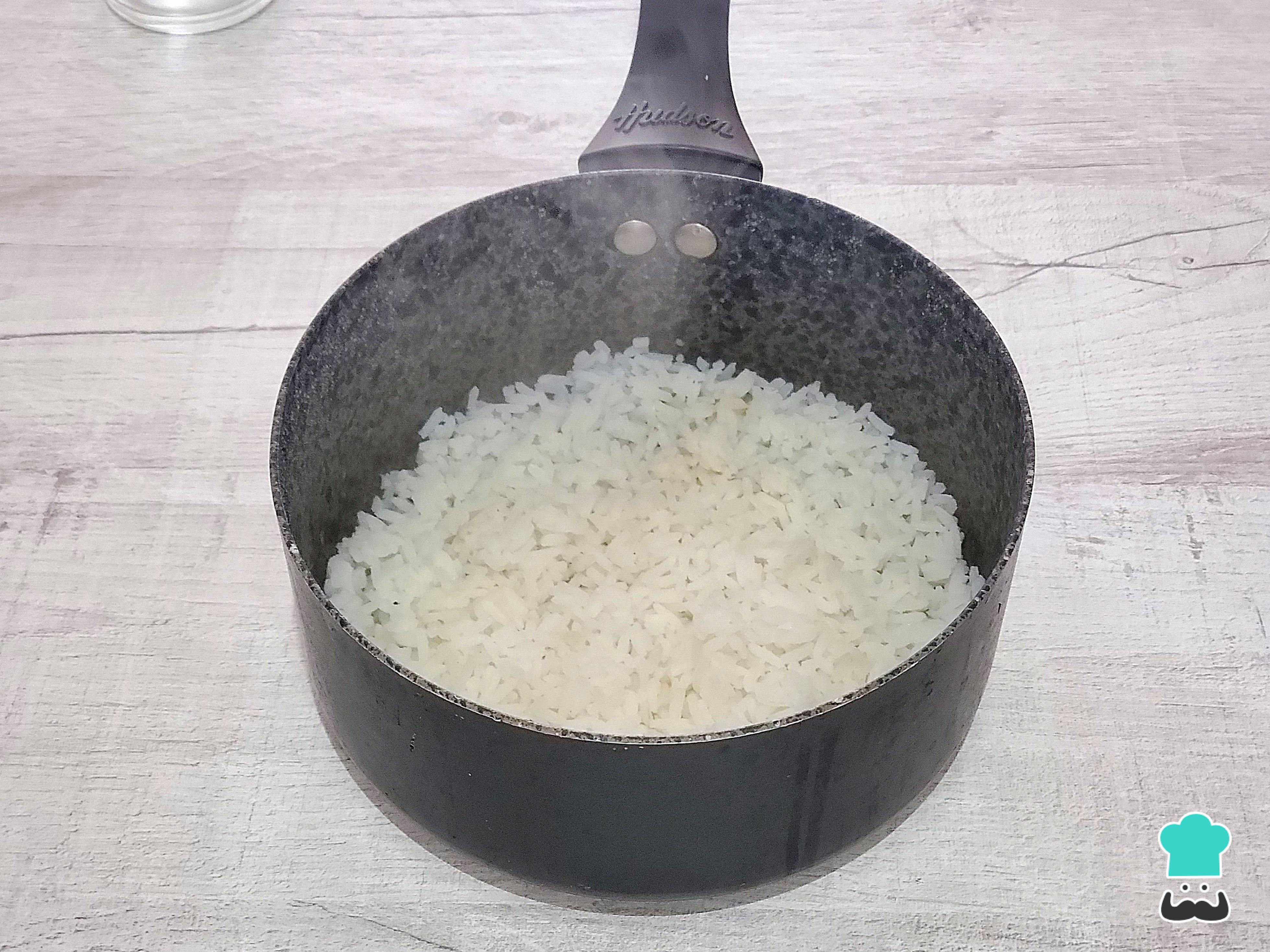 Vierte el agua, sazona con una cucharadita de sal, deja que hierva y, luego, reduce el fuego. Tapa la olla y deja que el arroz se cocine hasta que esté perfectamente graneado.