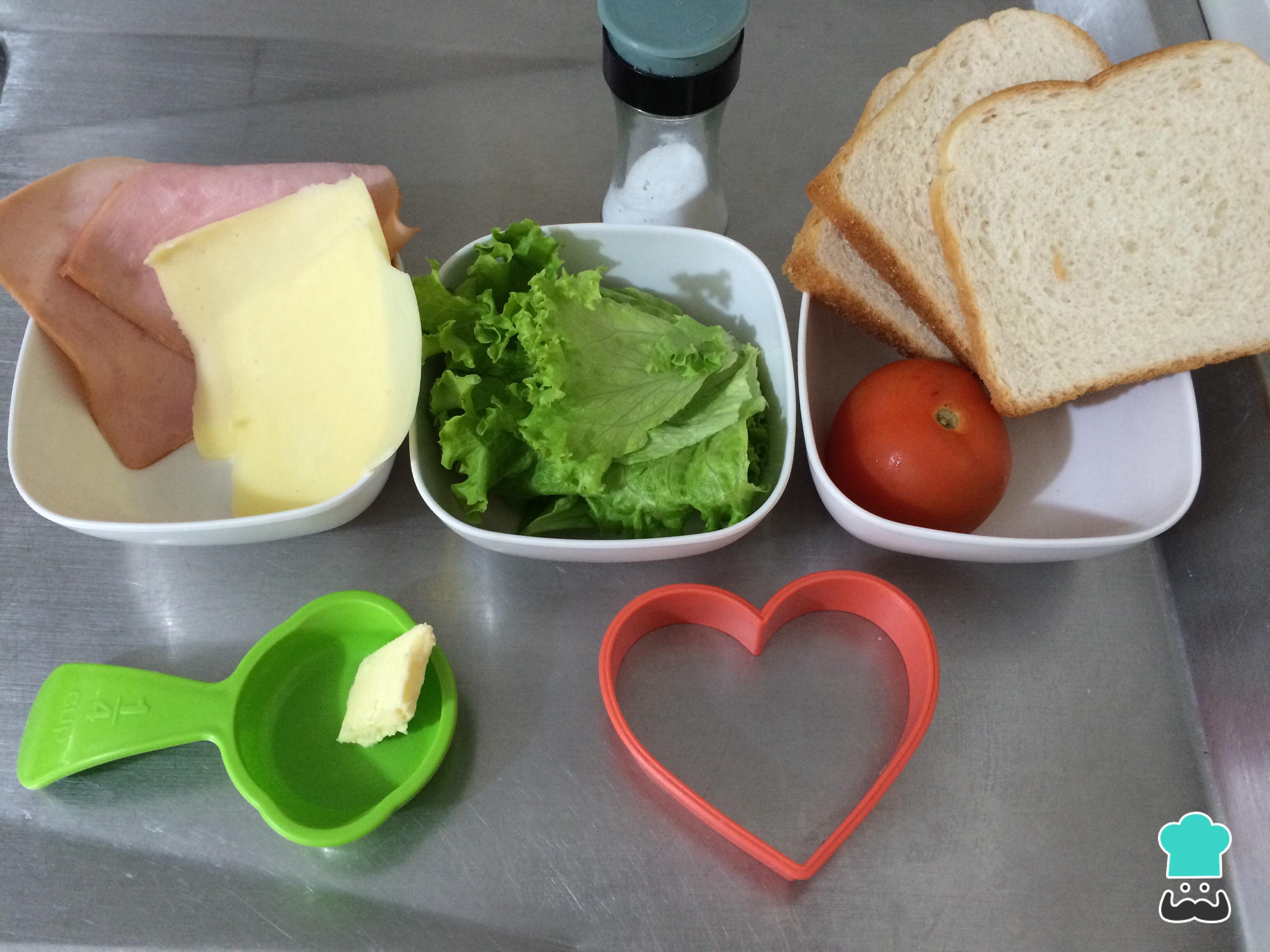 Antes de realizar esta receta para San Valentin, el primer paso es alistar todos los ingredientes. Yo he utilizado un cortador en forma de corazón pensando en San Valentín, pero tú puedes utilizar cualquier forma que tengas.
