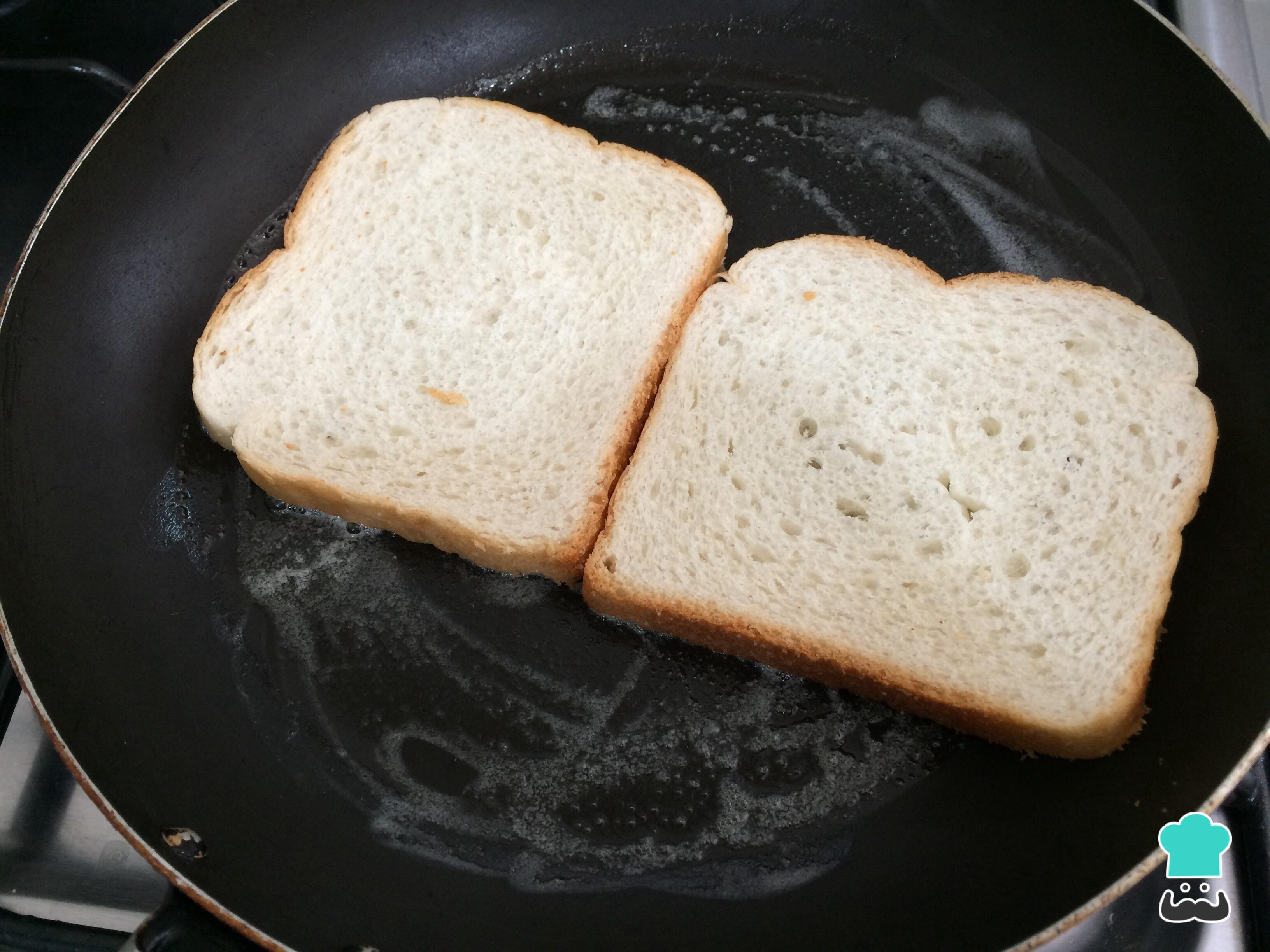 En un sartén derretir mantequilla, agregar dos rodajas de pan y tostar por ambos lados, reservar.