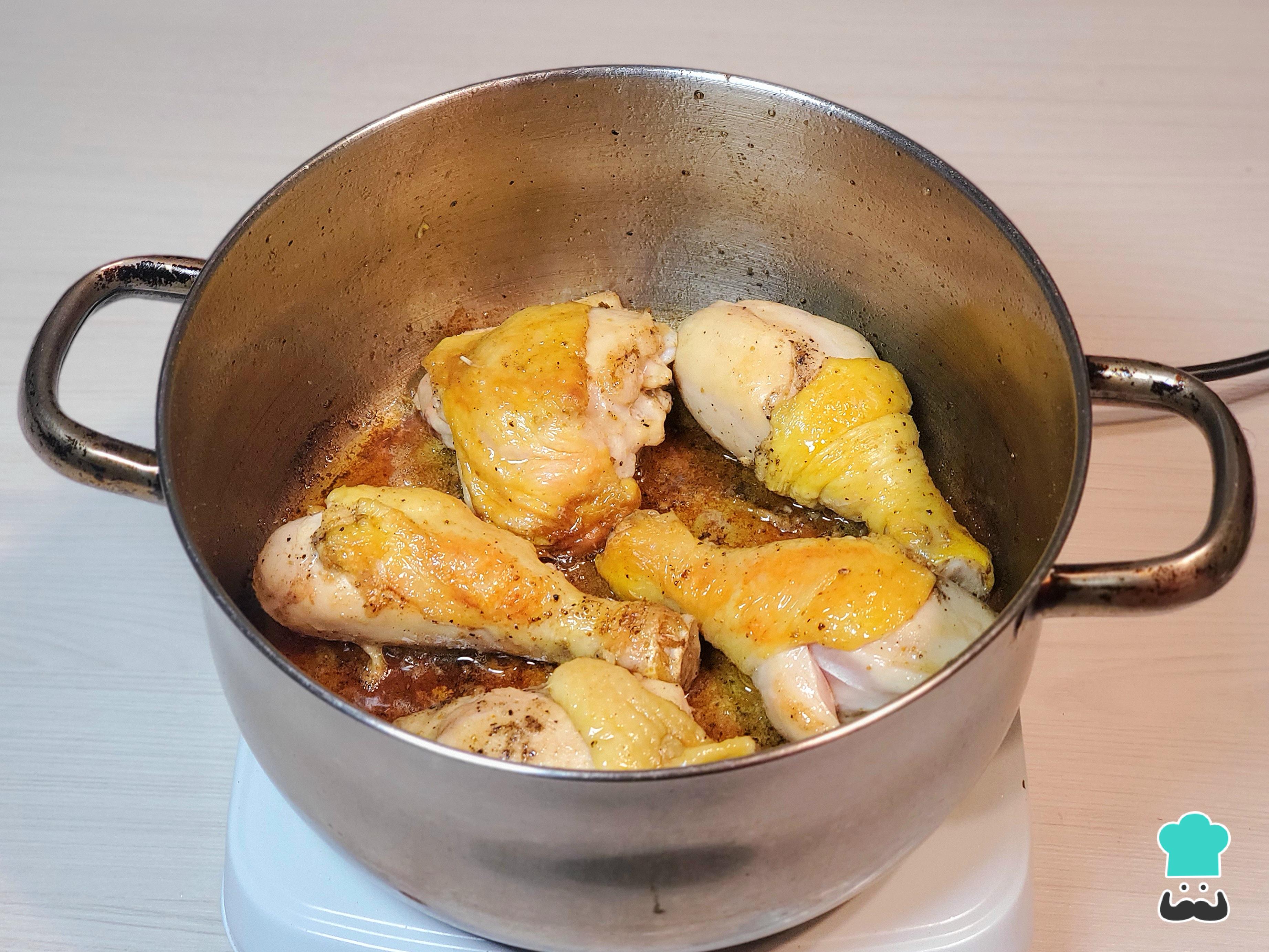 Para el seco norteño de pollo, empieza condimentando las piezas de pollo con pimienta molida, comino molido y sal. Esparce bien las especias y, en una olla con un buen chorro de aceite caliente, sella las piezas de pollo por cada lado hasta que estén ligeramente doradas. Luego, resérvalas aparte.