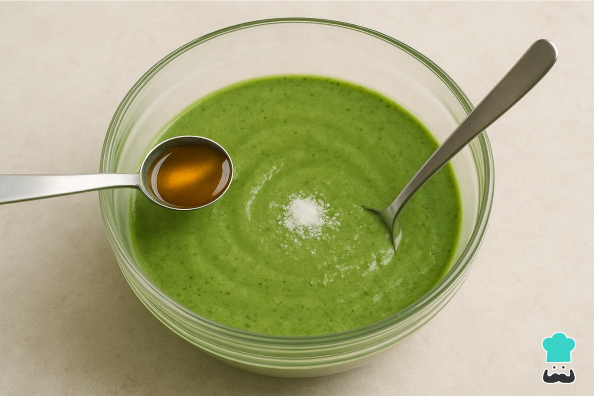 Prueba la mezcla y ajusta la dulzura con más miel si es necesario. Añade una pizca de sal marina para resaltar los sabores. Si deseas una consistencia más ligera, añade un poco de agua fría o hielo picado.