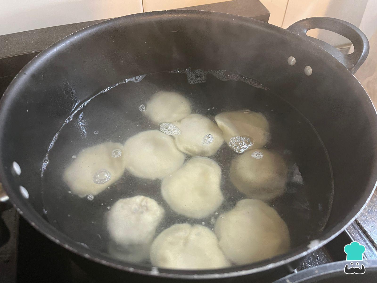 Cuando tengas todos los sorrentinos listos, cocínalos por tandas para que no se superpongan. Hazlo en abundante agua hirviendo por 1 minuto contando desde que el agua vuelva a hervir y floten.