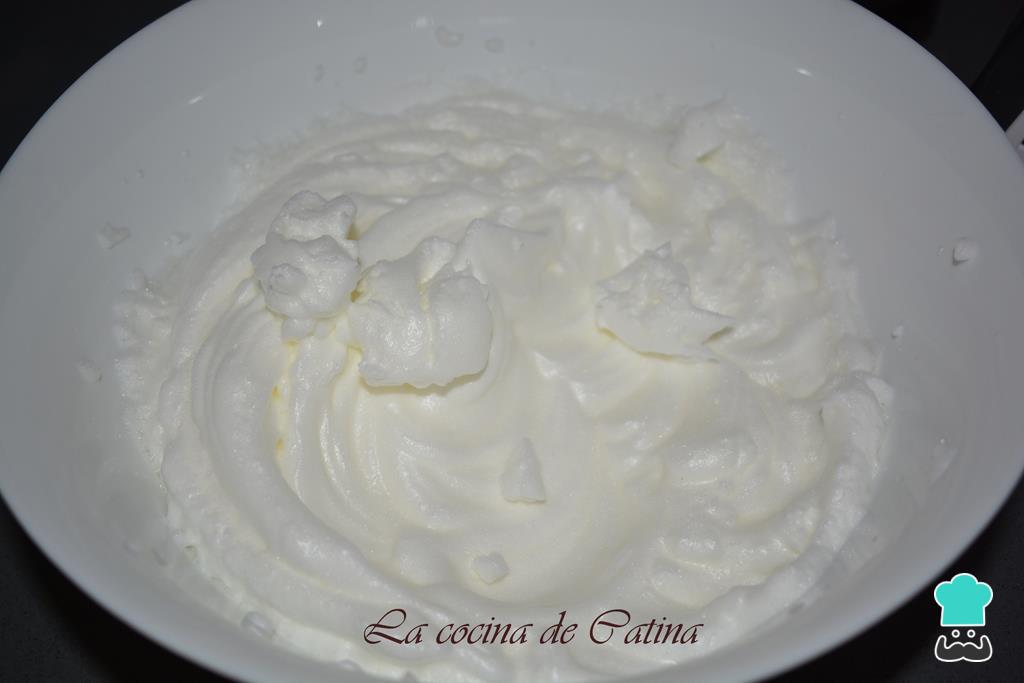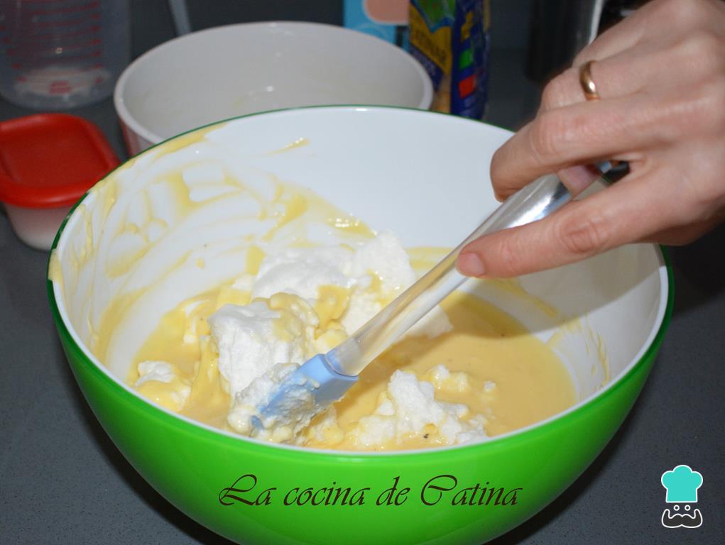 Cuando estén bien montadas las claras, las juntamos con la crema anterior con movimientos envolventes.