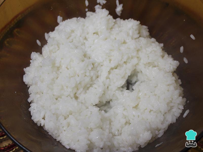 Truco: Importante: para manipular el arroz de sushi mantén siempre las manos húmedas o se te pegará todo en los dedos.