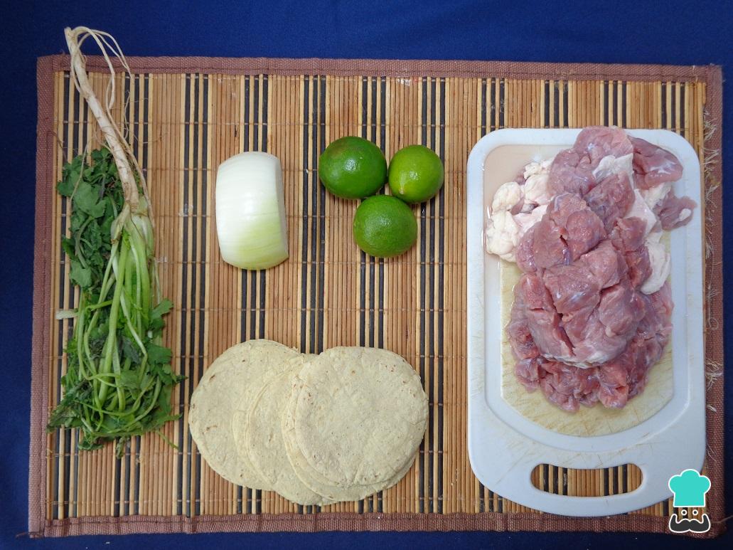 En la siguiente imagen podrás observar los ingredientes que necesitaremos para elaborar estos deliciosos tacos de suadero estilo callejero.