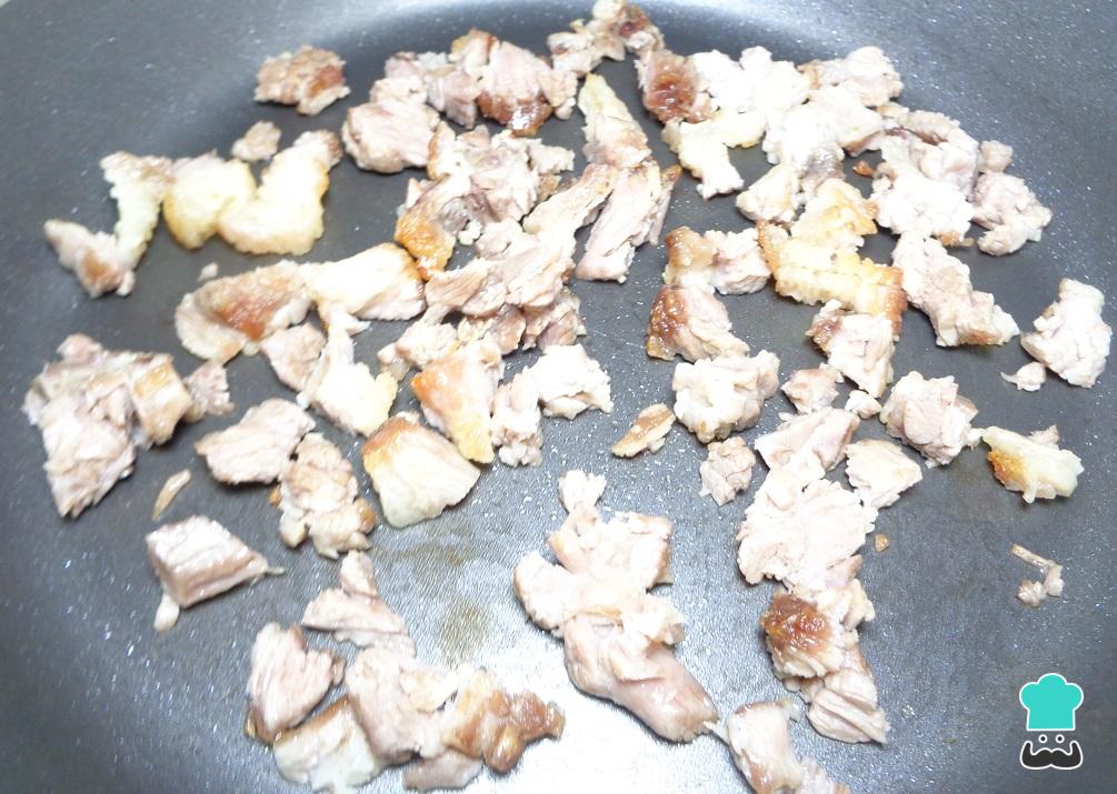 Ahora tomamos de nuevo nuestra carne de suadero y la picamos en trozos mucho más pequeños. Una vez lista la llevamos nuevamente al sartén con aceite caliente, y dejamos que se fría hasta que esté dorada.