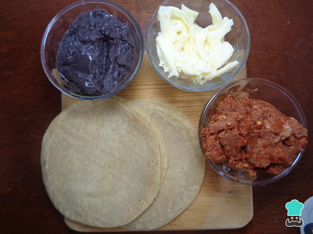 En la siguiente imagen podrás observar los ingredientes que necesitaremos para la preparación de estos deliciosos tacos dorados de frijoles con queso.