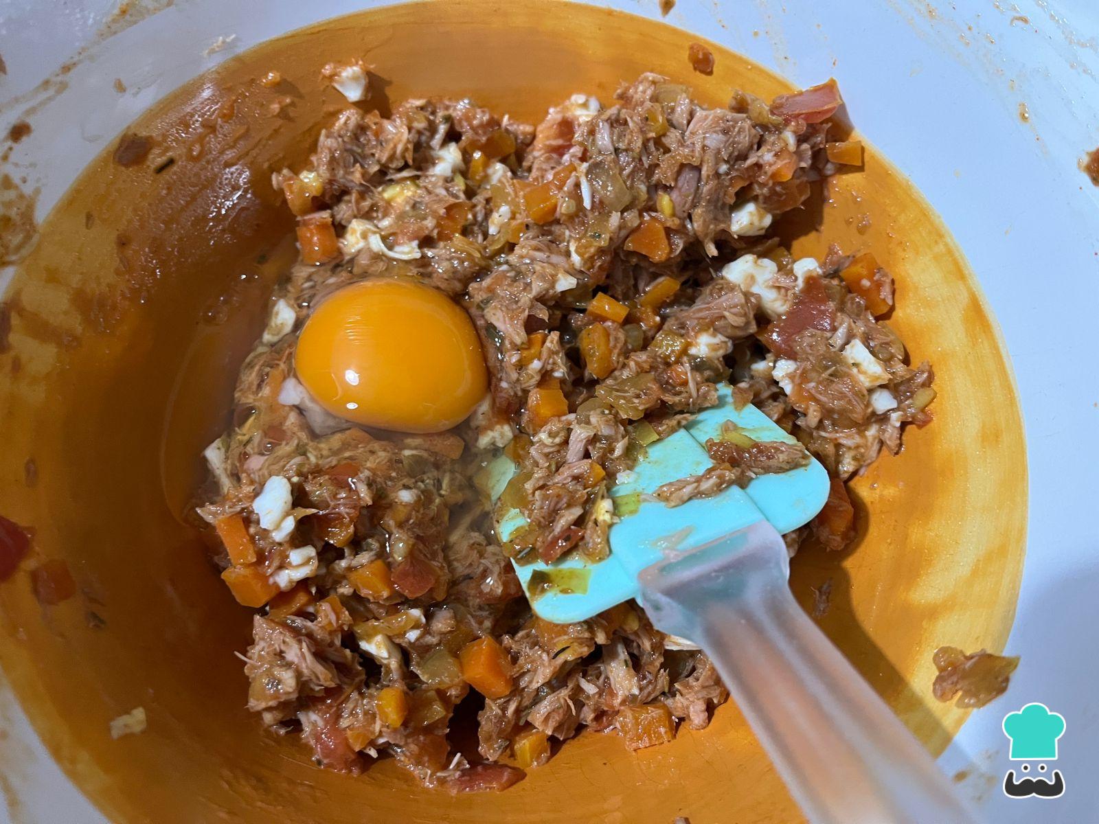 Una vez que tengas tu relleno frío y listo, agrega el segundo huevo para amalgamar.