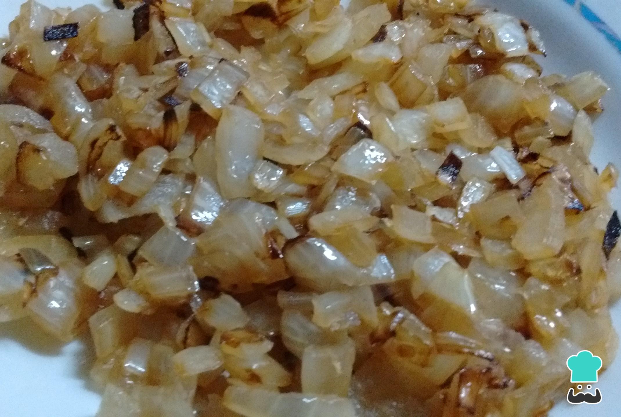 Posteriormente, pela y pica la cebolla y dórala en una sartén con 1 cucharada de aceite. Reserva.