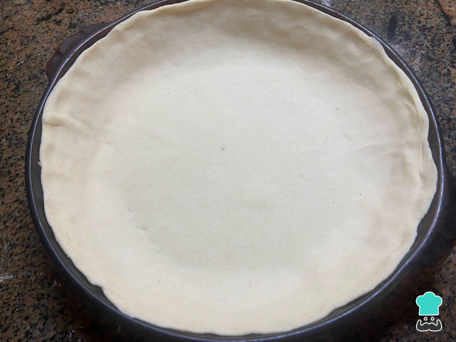 Enciende el horno para precalentarlo a 180 ºC - 200 °C y cubre la tartera con el disco de masa.