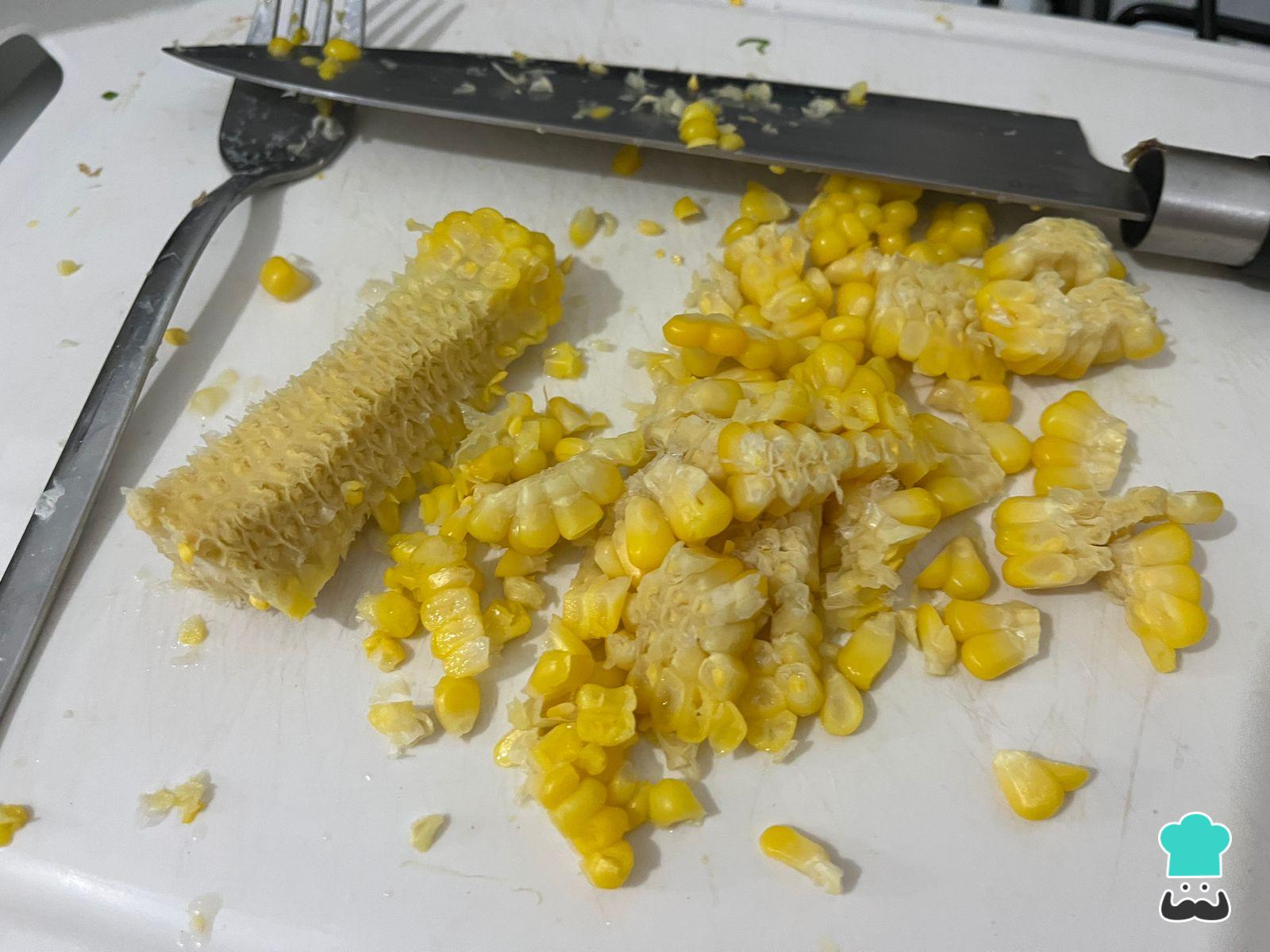 Cuando el choclo esté listo, retira los granos para poder mezclarlos con el relleno.