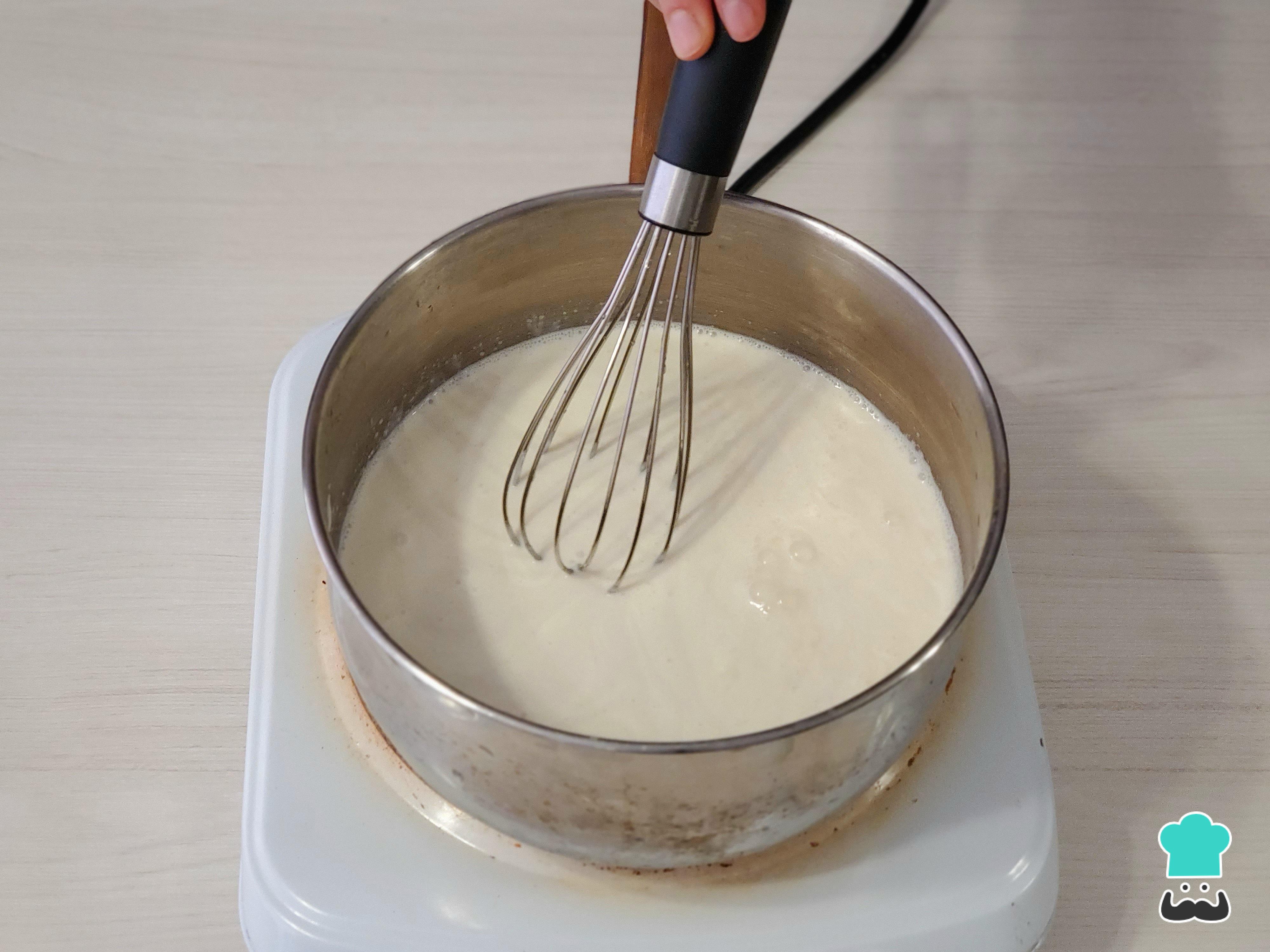 Mueve constantemente hasta que rompa hervor y comience a espesar. Al romper hervor mantén en el fuego por 3 minutos para cocinar la fécula de maíz.