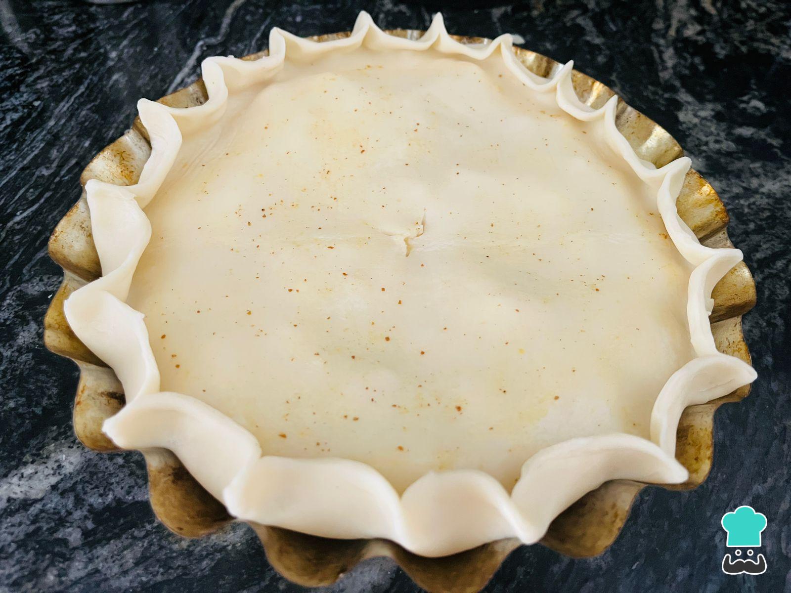 Humedece los bordes y tapa con la segunda masa. Haz una ligera fuerza para unir ambas masas y corta para emprolijar. Puedes decorar con este sencillo repulgue pellizcando suavemente la masa. Haz una cruz en el centro para que despida el exceso de líquido. Pinta, si lo deseas, con huevo batido o mostaza.