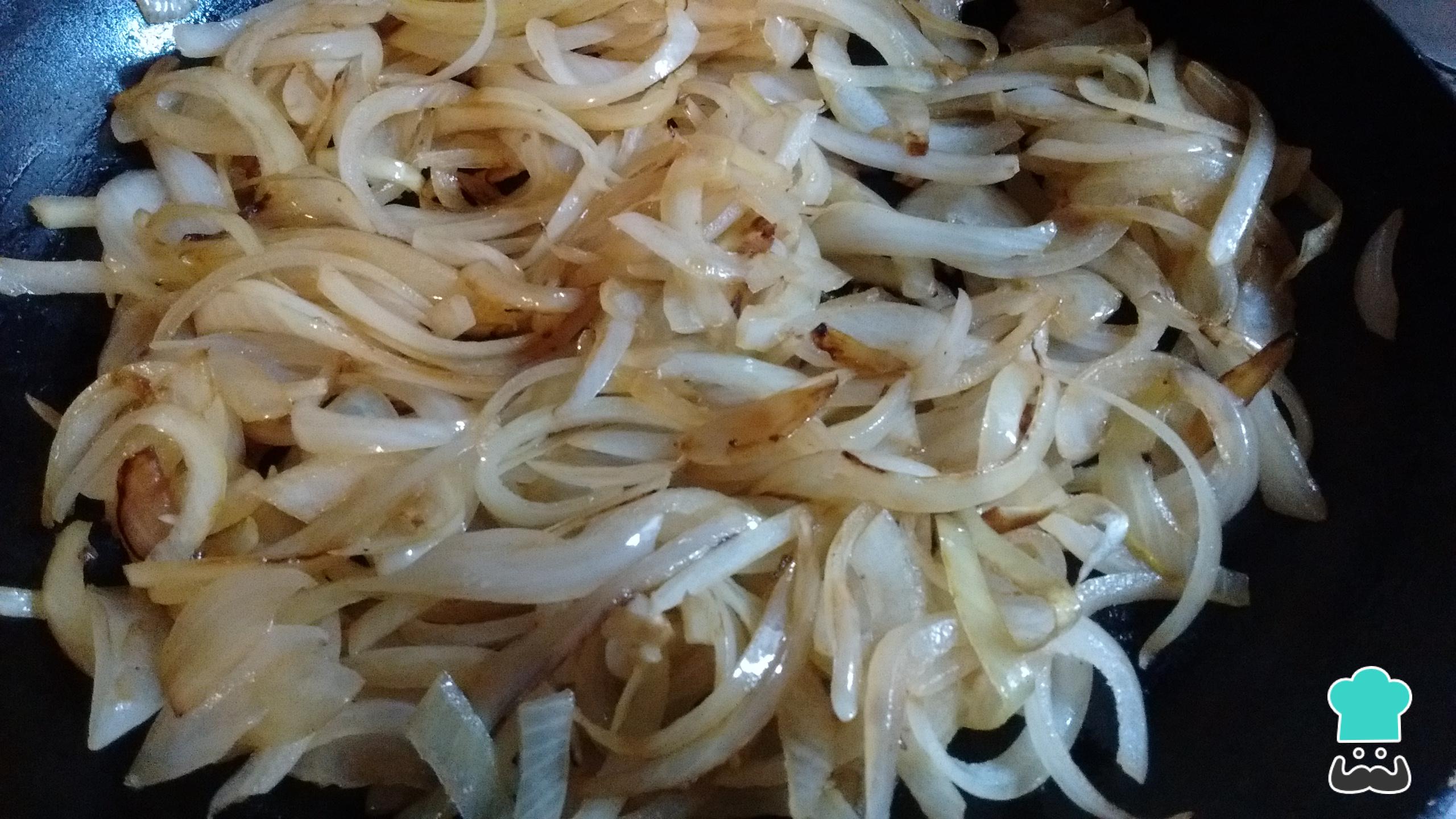 Vierte una cucharada de aceite en una sartén y cocina allí las cebollas hasta dorarlas. Reserva