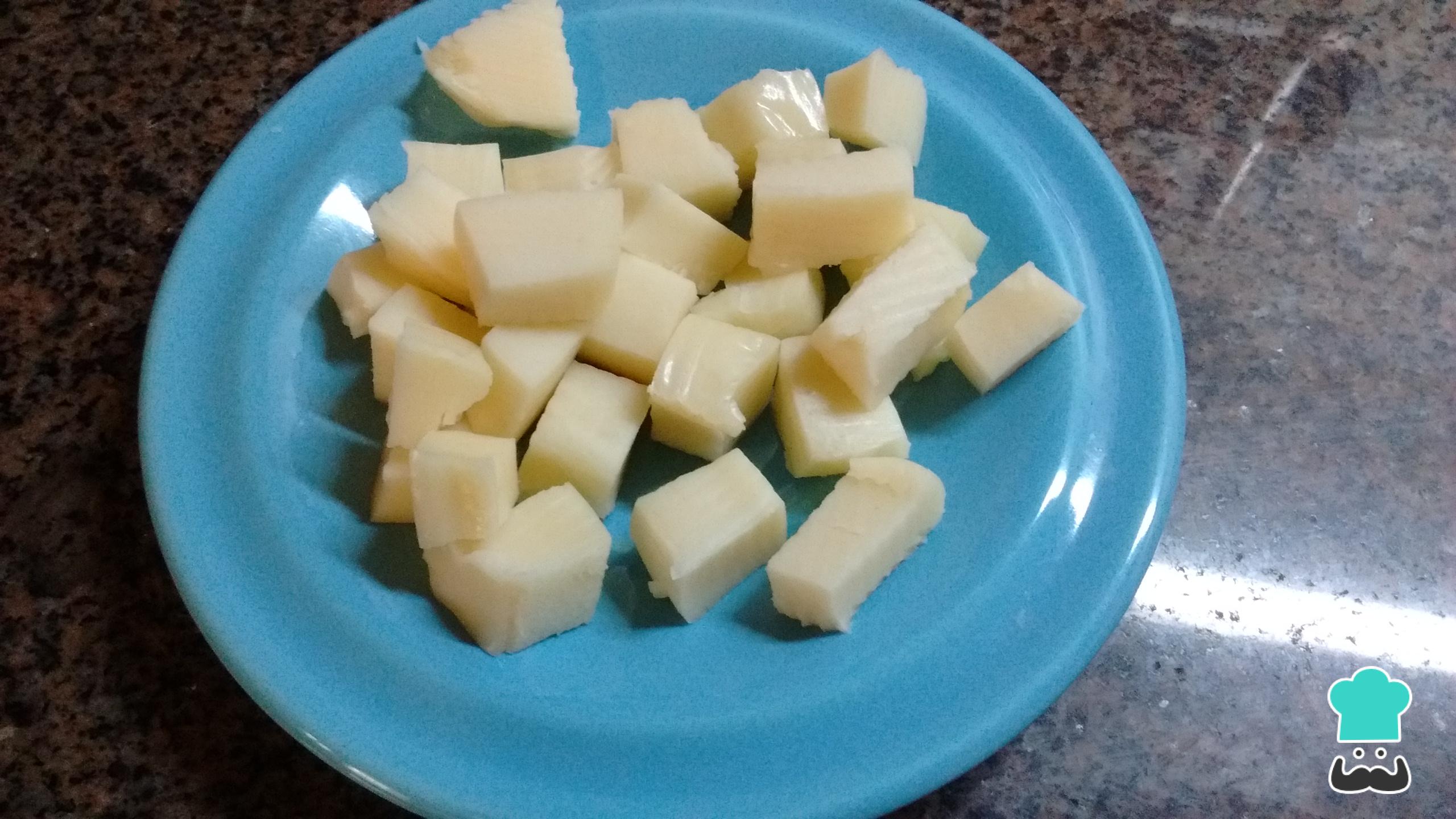 Posteriormente, corta la muzzarella en cubos y reserva.